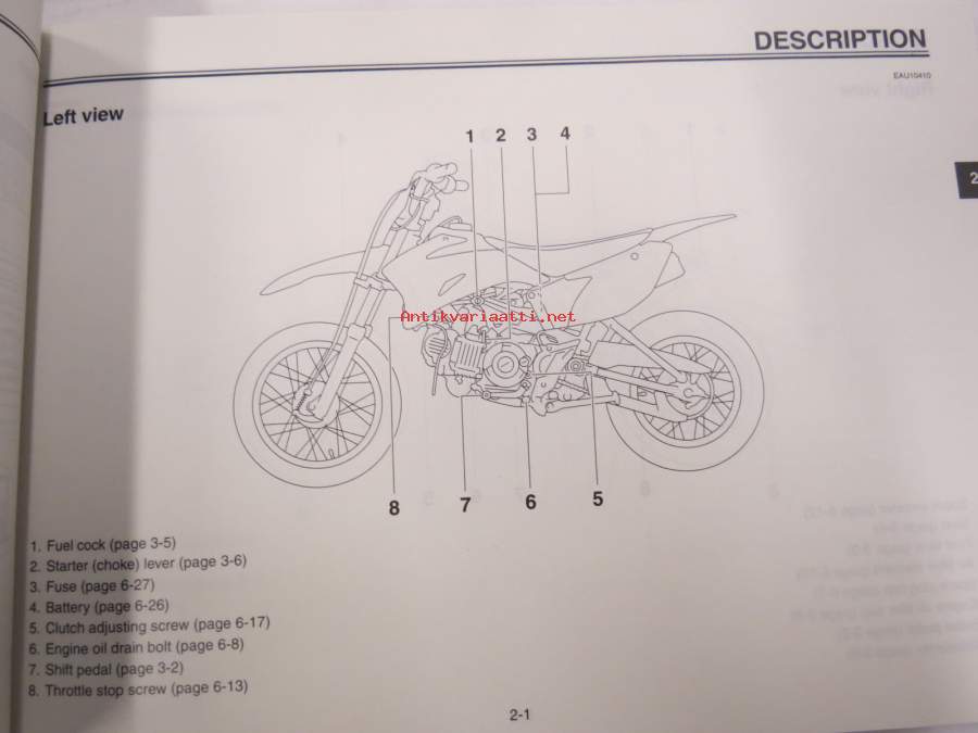 Yamaha YFM80RV Owner´s manual, Manuel du proprietaire, Manual del propietario -moottoripyörä, käyttöohjekirja englanniksi, italiaksi, espanjaksi