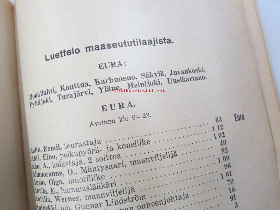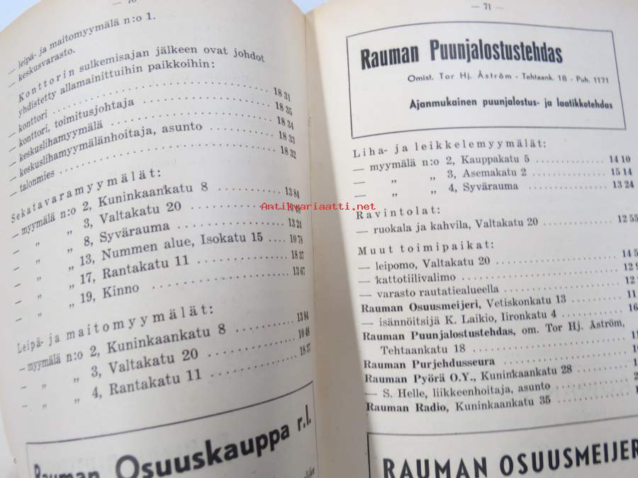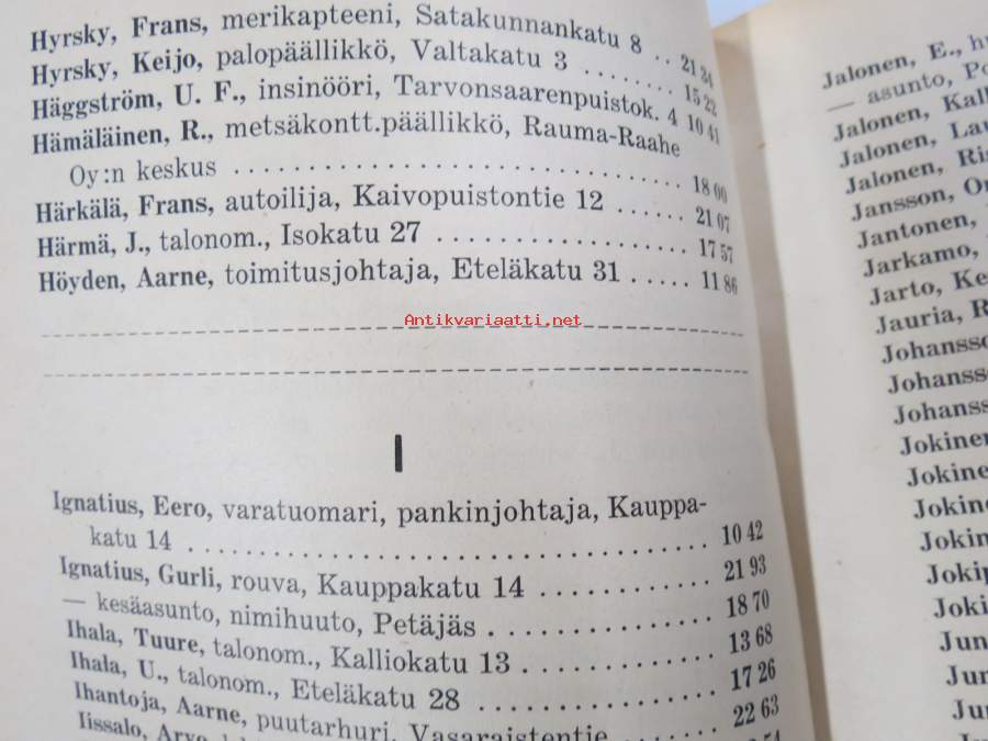 Rauman ja sen ympäristön puhelinluettelo 1945