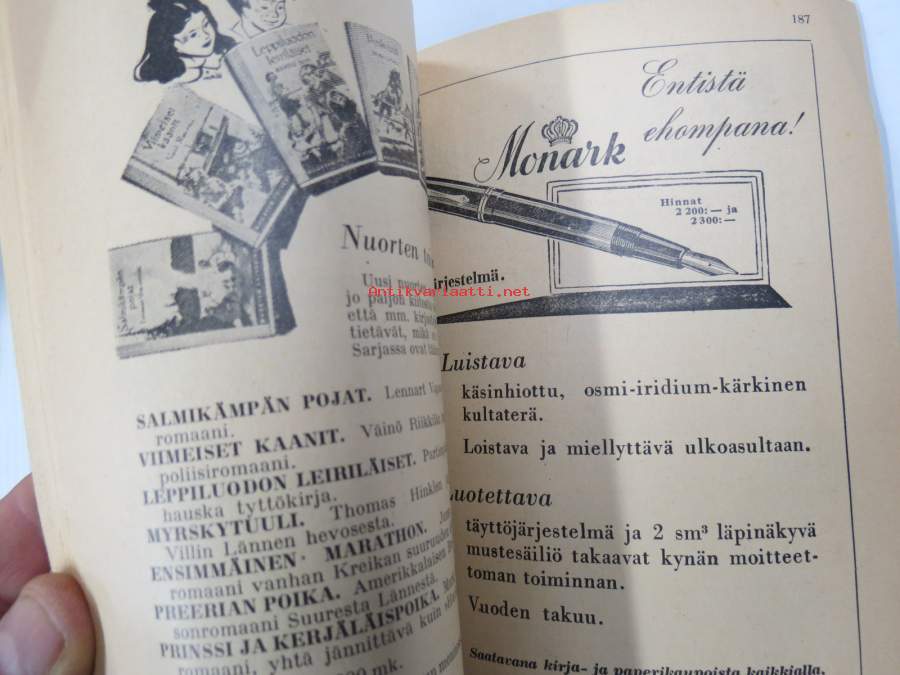 | Saatavilla | 1 kpl | | Julkaisuvuosi | 1952 | | Sivuja | 200 | | Kunto | K2 | | Sidonta/painoasu | Nidottu (pehmeäk.) | | Kielet | Suomi |