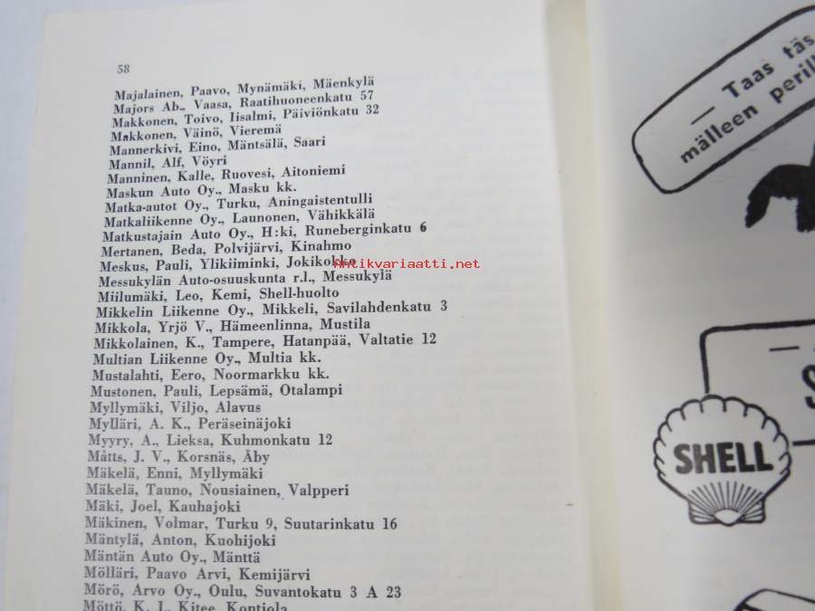 Shell autoilijan muistikirja 1965, sisältää huoltoasema- ja myyntipisteluettelon