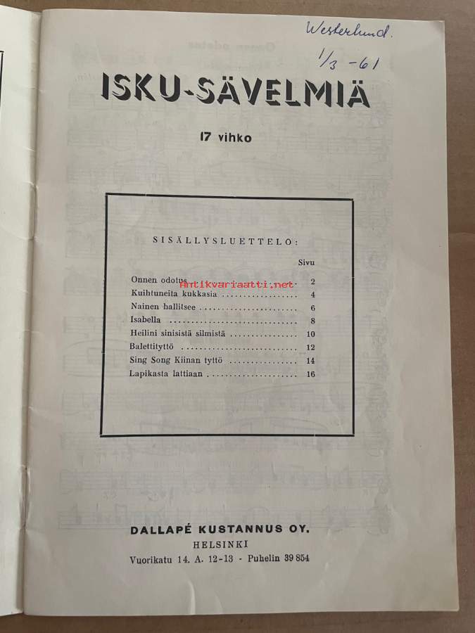 Koulutarpeiden keskuliike Osakeyhtiön Hintaluettelo lukuvuodeksi 1951-1953 nr 43