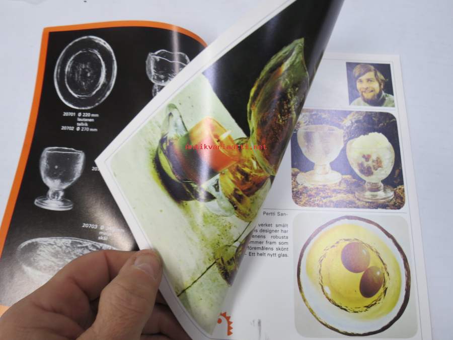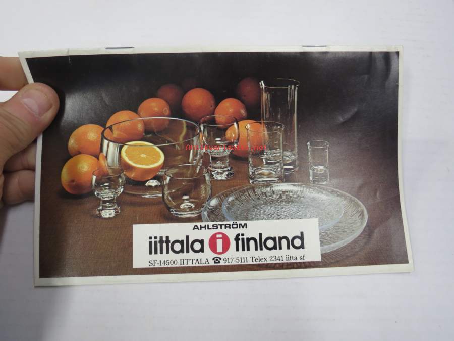 Ahlström Iittala -tuoteluettelo / myyntiesite; Tsaikka, Paula, Otso, Gaissa, Pisaranrengas, Aslak, Niva, Kalinka, Ultima Thule, Valssi, Marski, Tapio, Senaattori ym.