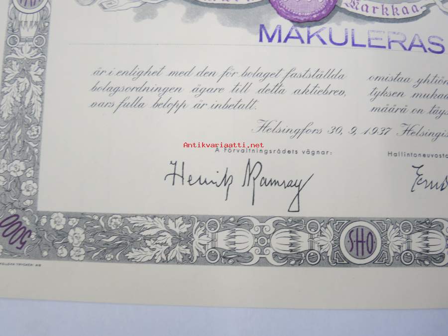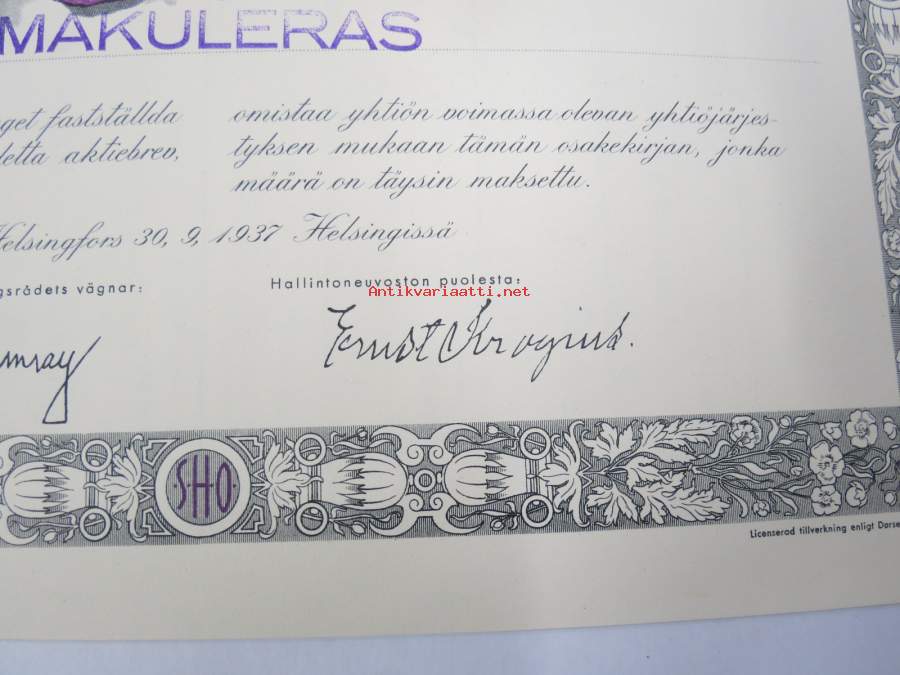 Osakekirjat, obligaatiot, debentuurit, osuuskirjat - Osakekirjat - kotimaiset blanco, specimen