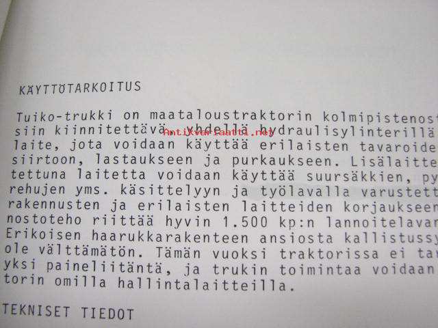 Tuiko trukki -käyttöohje (alkuperäiset, joista varsinaisia käyttöohjeita on monistettu asiakkaille)
