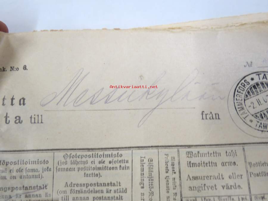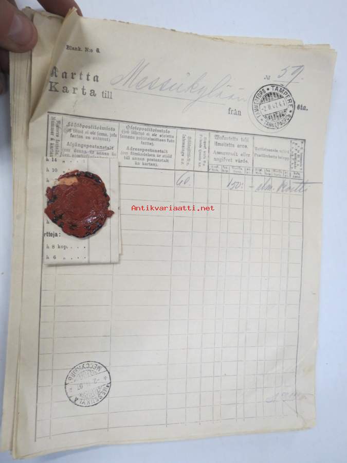 Kartta 1.8.-31.8.1910 Messukylään Tampereelta / Karta till... - Postilaitoksen kirjattujen lähetysten luettelo, sinettileima