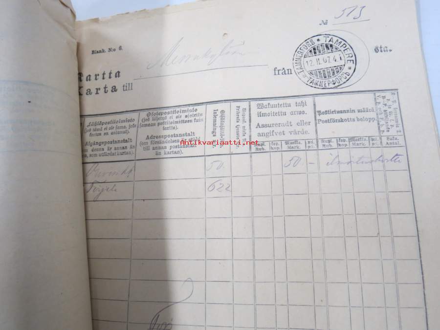 Kartta 2.2.-28.2.1907 Messukylään Tampereelta / Karta till... - Postilaitoksen kirjattujen lähetysten luettelo, sinettileima