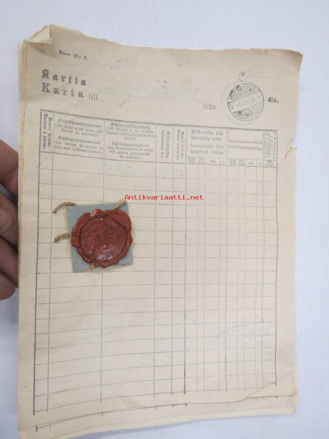 Kartta 2.3.-31.3.1909 Messukylään Tampereelta / Karta till... - Postilaitoksen kirjattujen lähetysten luettelo, sinettileima