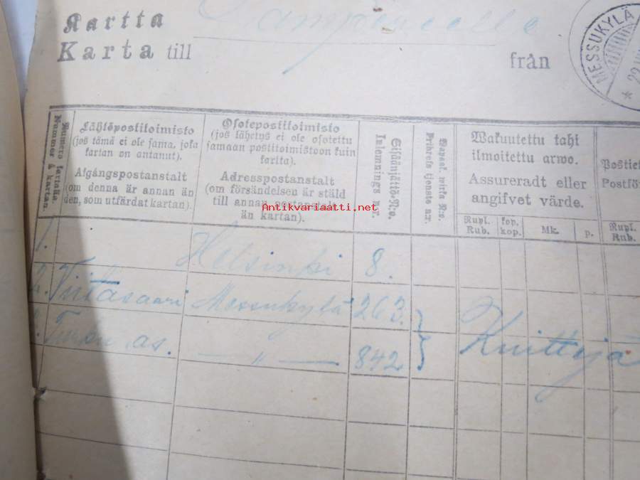 Kartta 1.8.-31.8.1910 Messukylään Tampereelta / Karta till... - Postilaitoksen kirjattujen lähetysten luettelo, sinettileima
