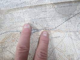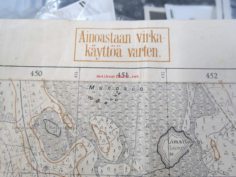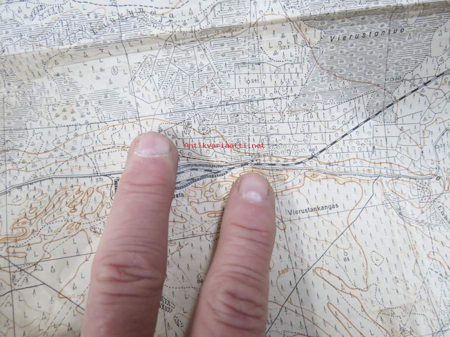 Noin 60 x 70 cm kartta tykistön harjoitusalueesta, Vierustan rautatiealueen purkaus- ja lastauspaikat. Ainoastaan virkakäyttöä varten tarkoitettu kartta.