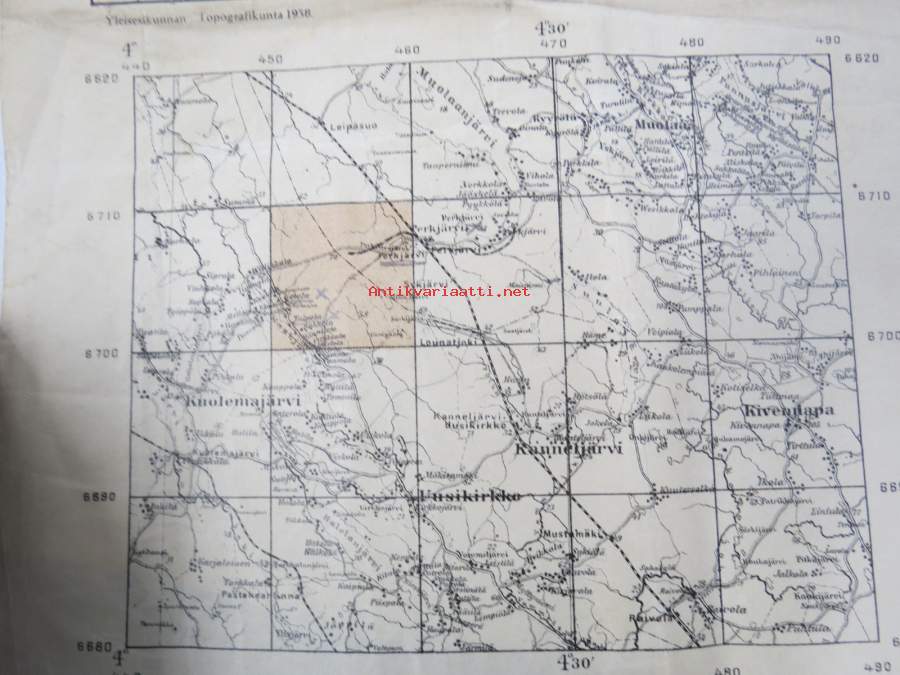 Kaukjärvi 6700/10-30-460/60 - Perkjärvi - Vierusta, tunnetun luovutetussa Karjalassa olleen Perkjärven tykistöharjoitusalueen kartta v. 1938