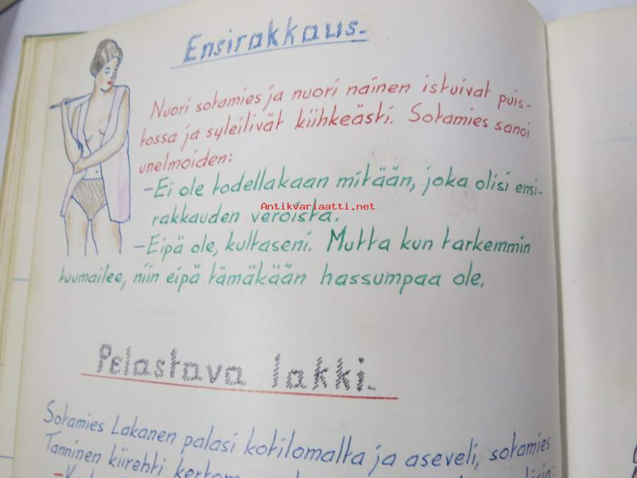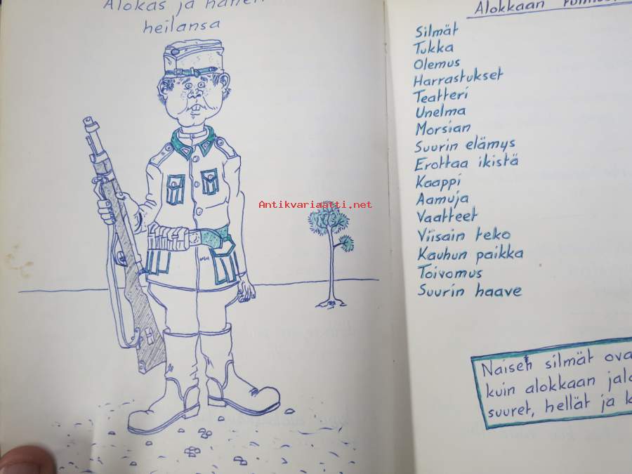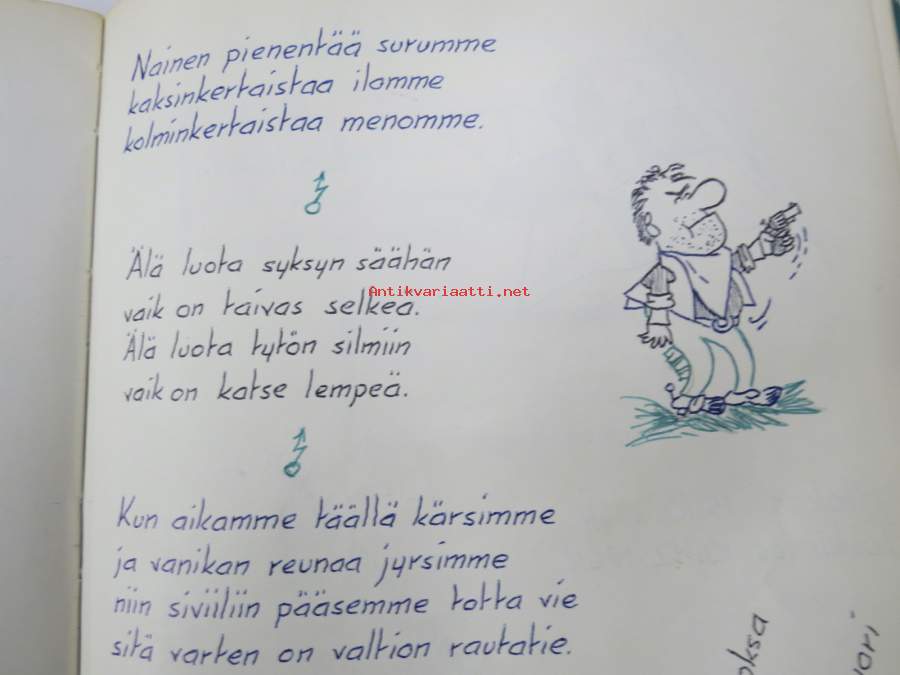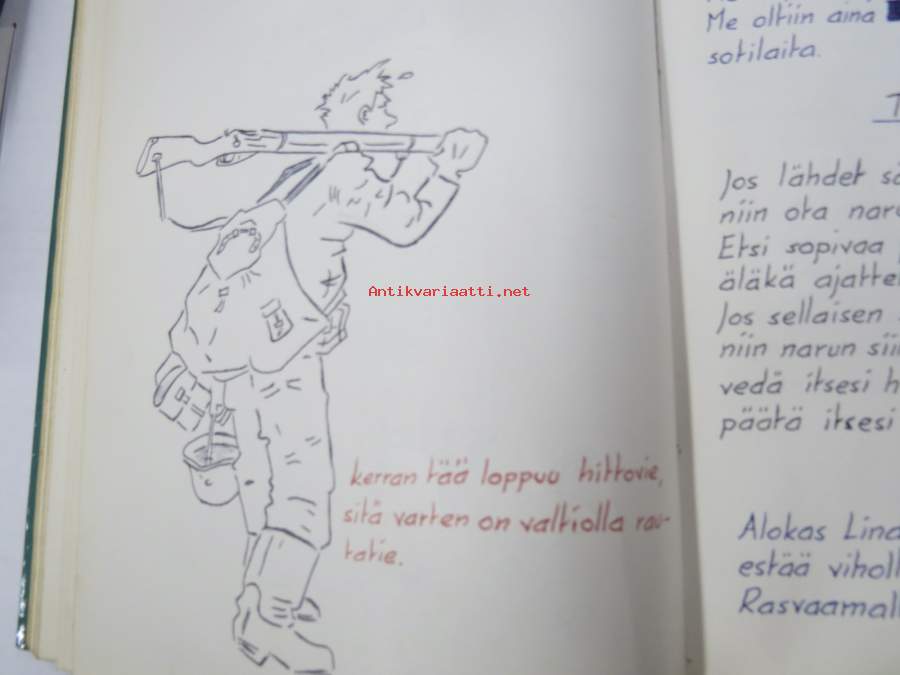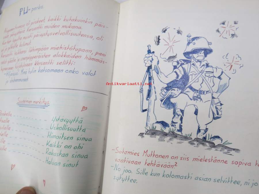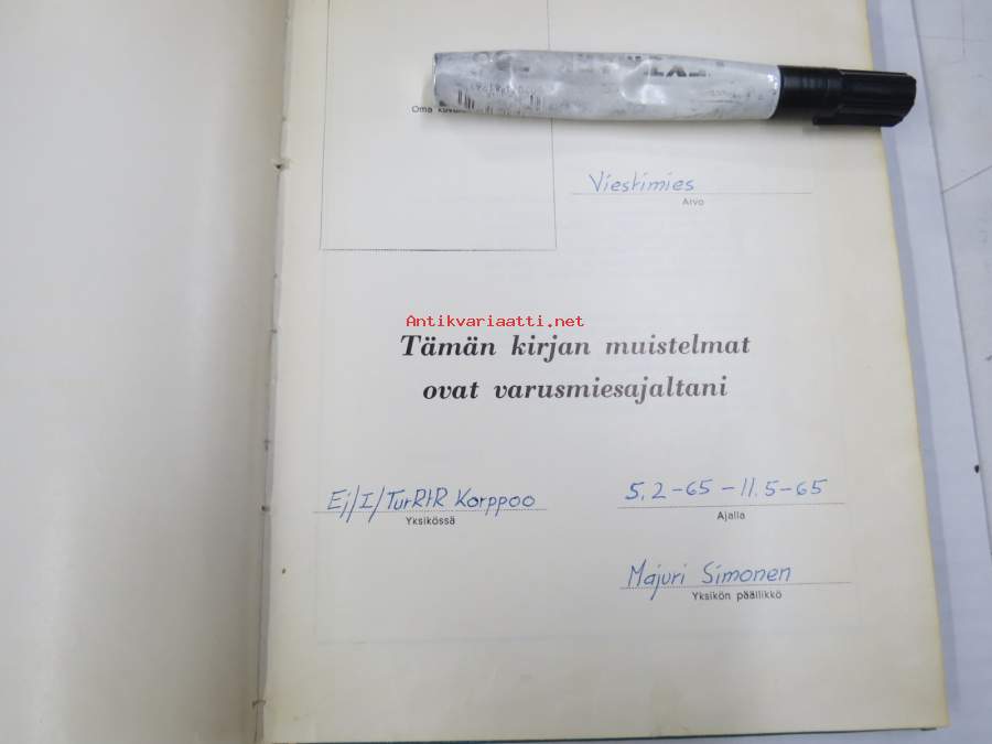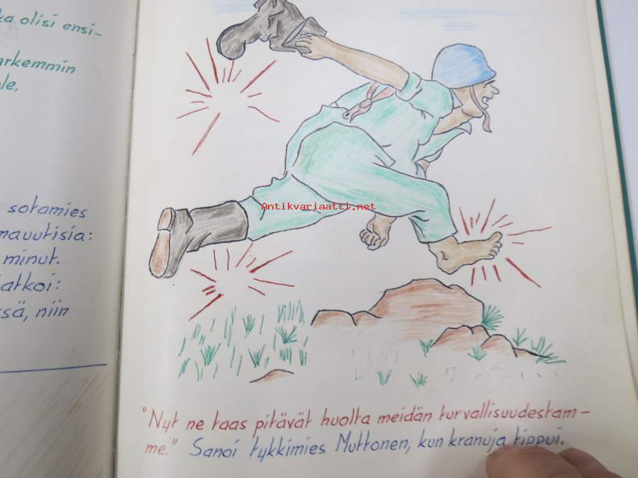 Sotilasmuistio (huom 2 kpl!) S.L. 1964-65 TurRtr viestimies varusmiesaikaisia muistoja ja piirroksia ym. varten tarkoitettu kirja, paljon tekstejä ja piirroksia Näytä