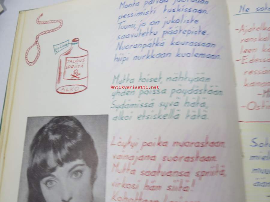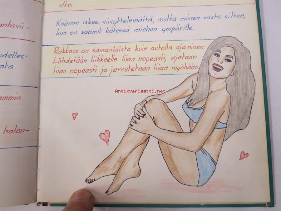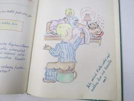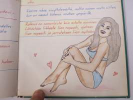 19 x 24 cm, erittäin runsaasti kirjoituksia ja piirroksia - saman henkilön 2 eri kirjaa!