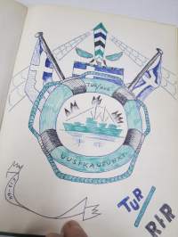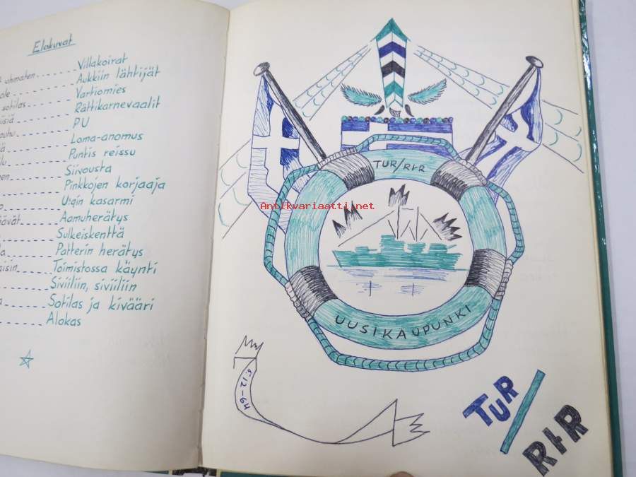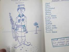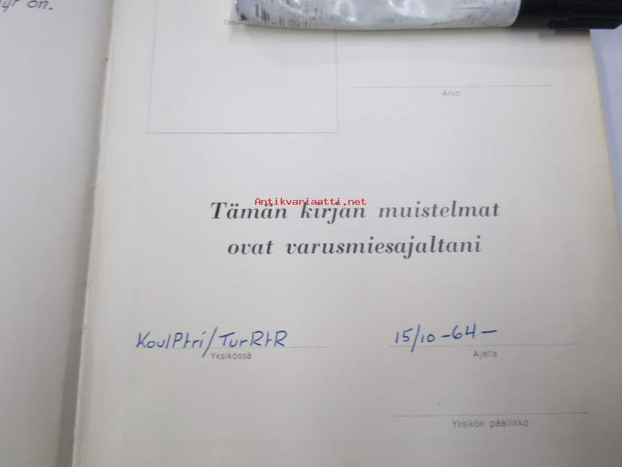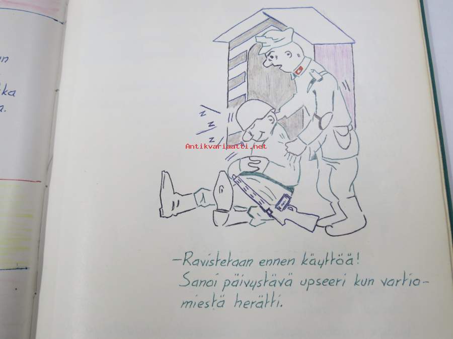 Sotilasmuistio (huom 2 kpl!) S.L. 1964-65 TurRtr viestimies varusmiesaikaisia muistoja ja piirroksia ym. varten tarkoitettu kirja, paljon tekstejä ja piirroksia