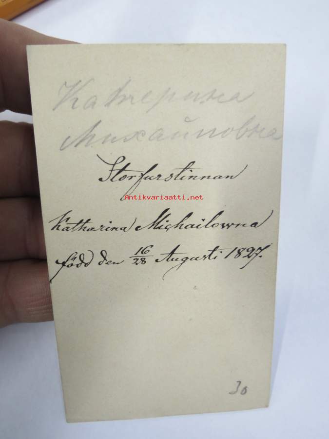 Storfurstinnan / Suuriruhtinatar Katarina Mihailovna -visiittikorttivalokuva (piirroskuvasta?), CDV, myyntikuva, ei kuvaamotietoja