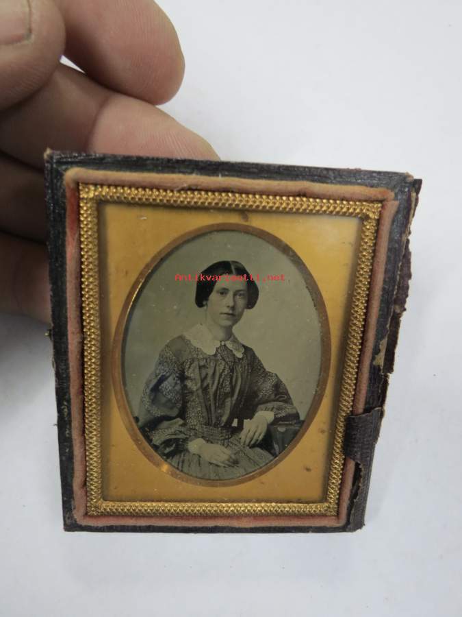 Rouva - ambrotyyppi (ambrotype) -kehyksessä oleva valokuva noin 1850-1860 luvulta