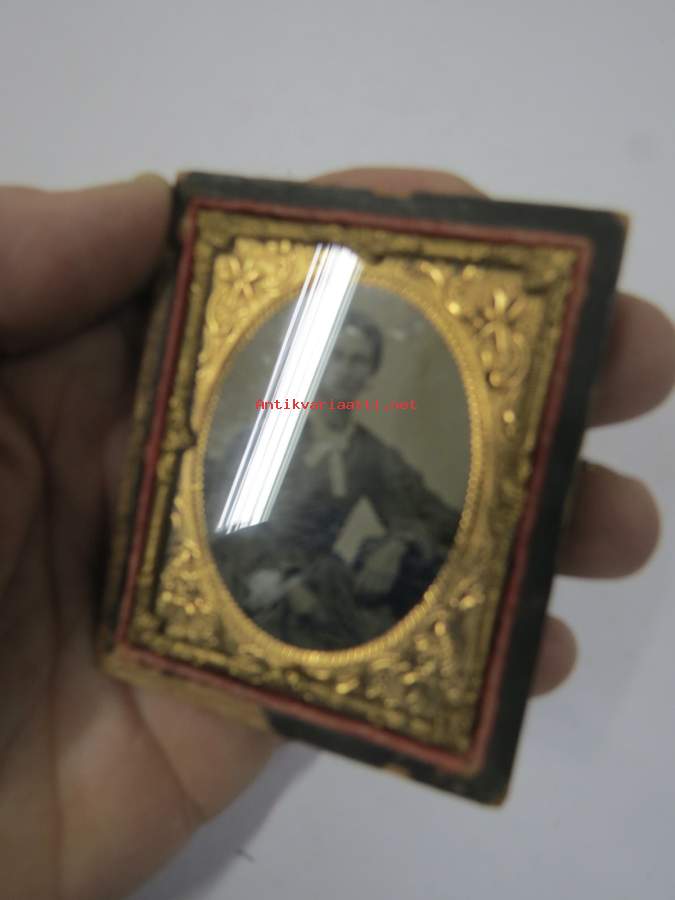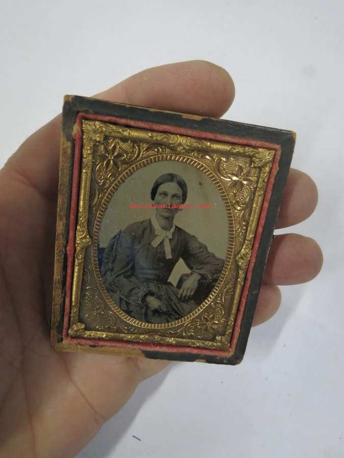 Rouva - ambrotyyppi (ambrotype) -kehyksessä oleva valokuva noin 1850-1860 luvulta