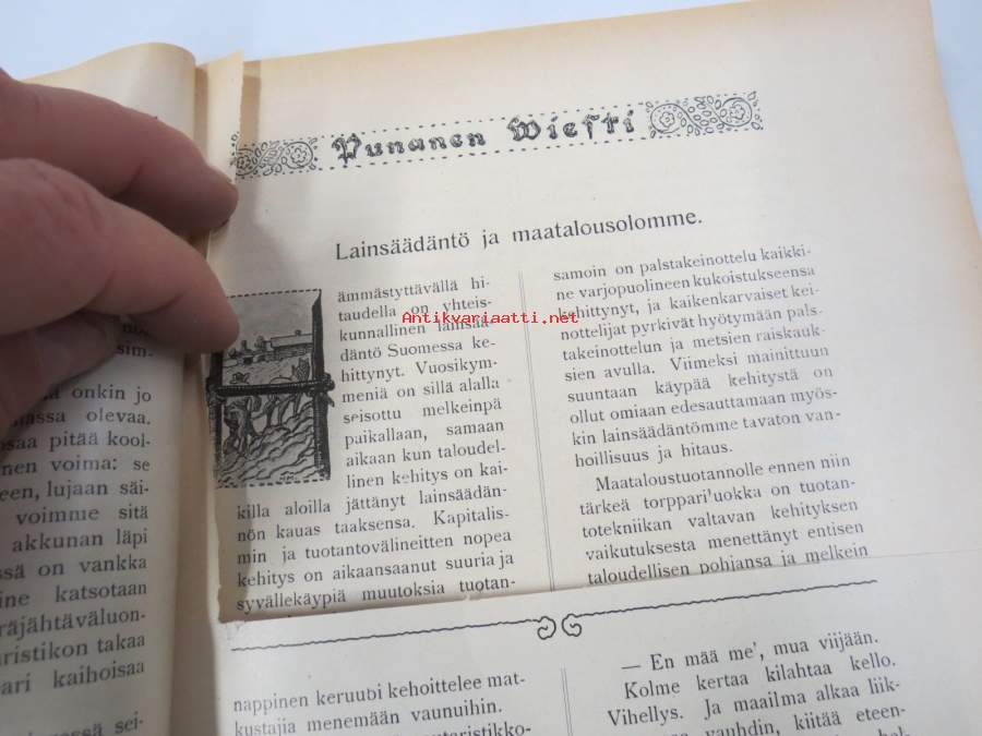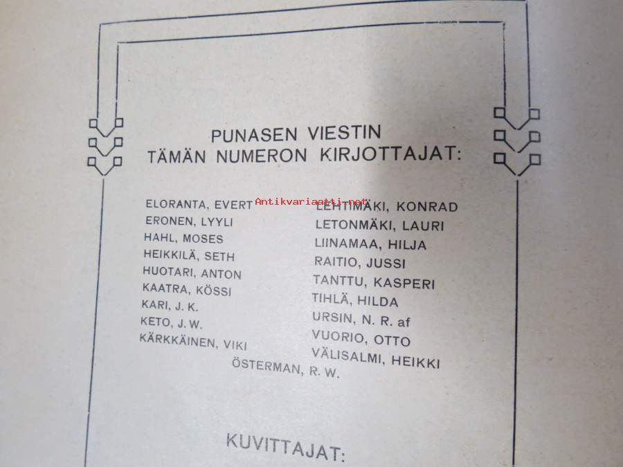 Punanen Viesti (Punainen wiesti) 1916 - Sosialidemokraattinen kevätjulkaisu, propagandistinen, osin tosipohjaista tekstiä, osin kaunokirjallista, kuvitusta