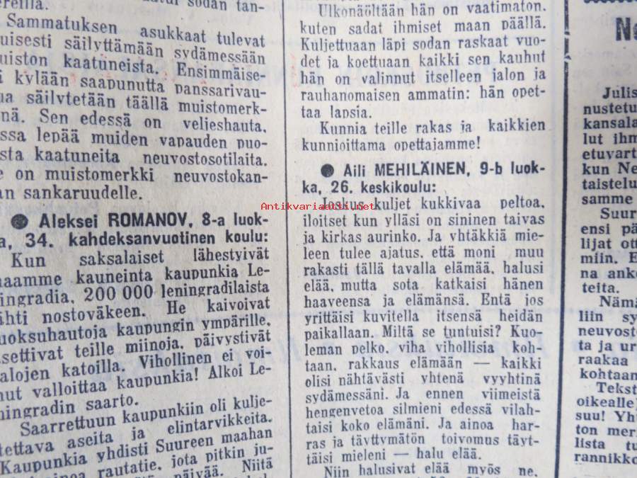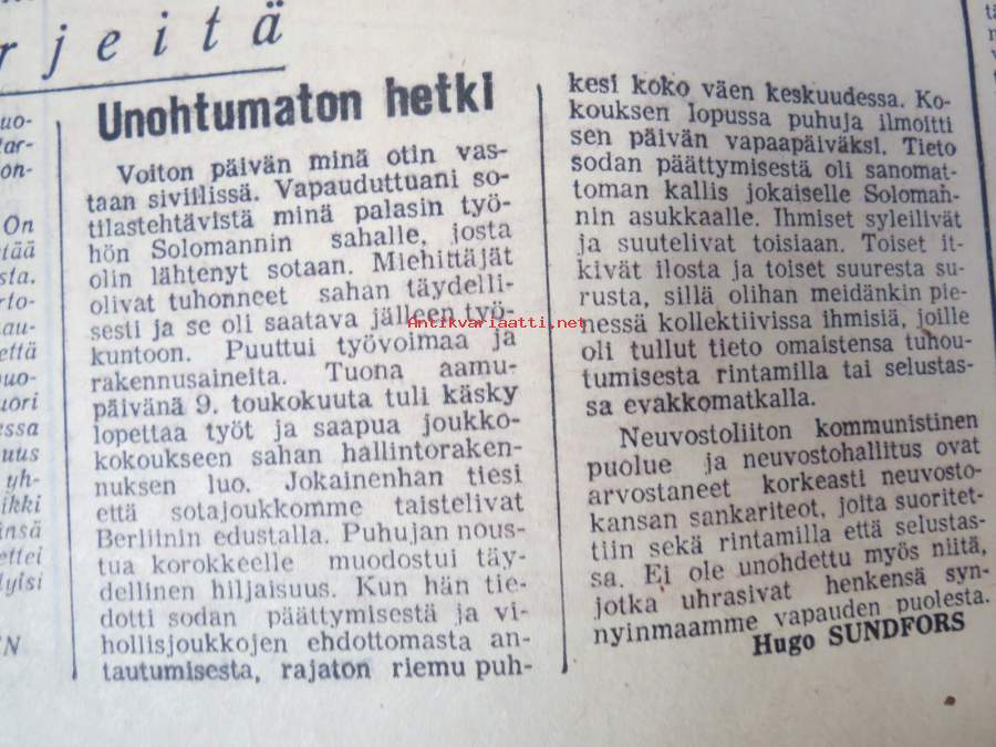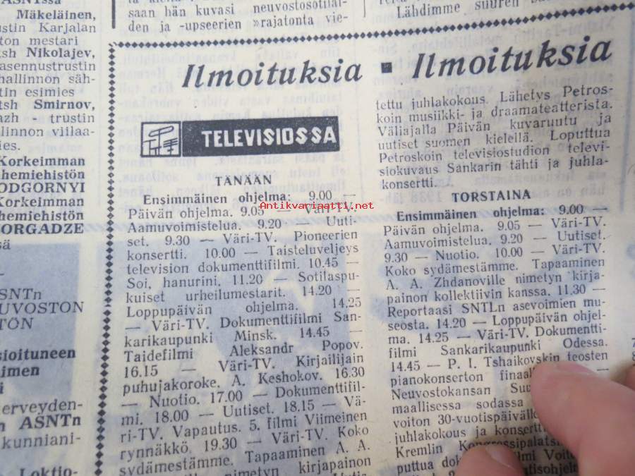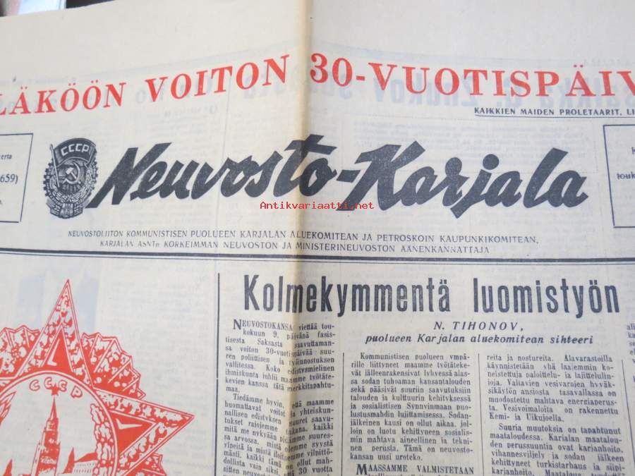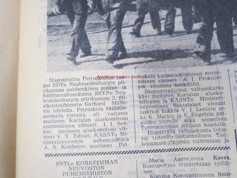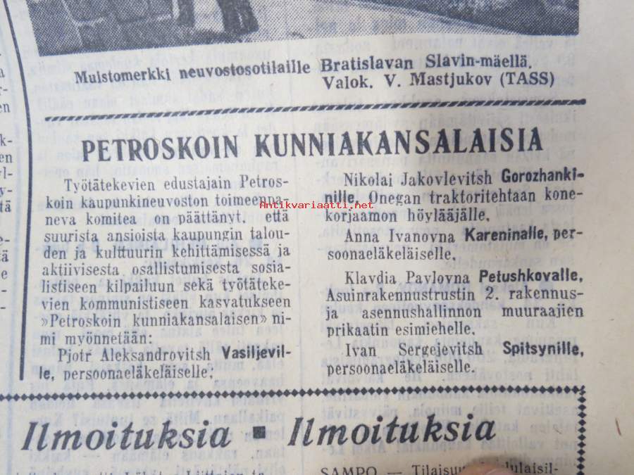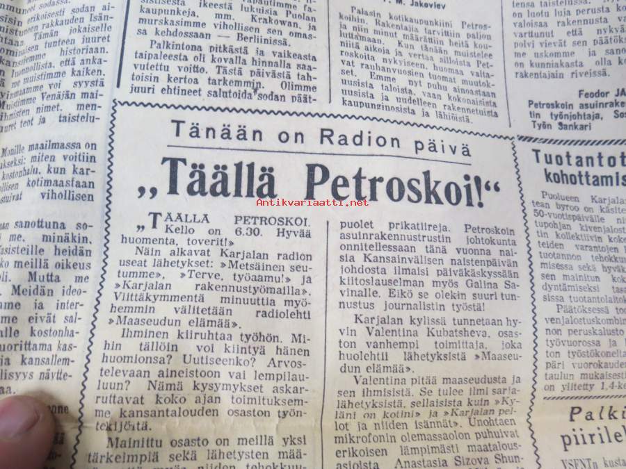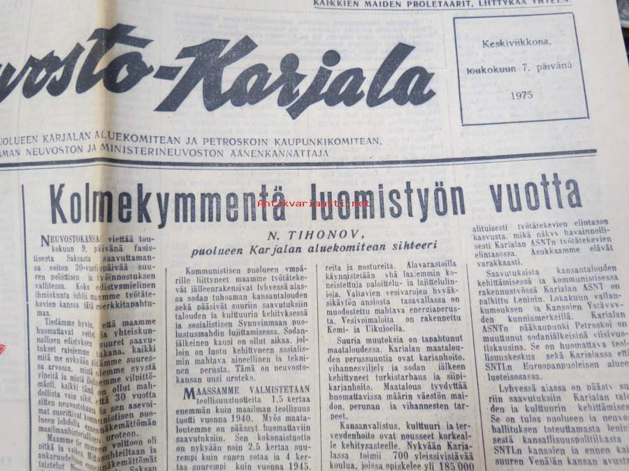 Neuvosto-Karjala, 3.10.1975 (ilmestynyt Petroskoissa); Pääjärvi - ystävyyden rakennustyömaa, Ansiomerkki "Työuljuudesta", Sulo Jjuntunen - omaperäinen maisemamaalari
