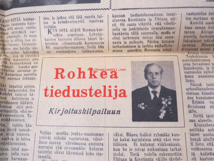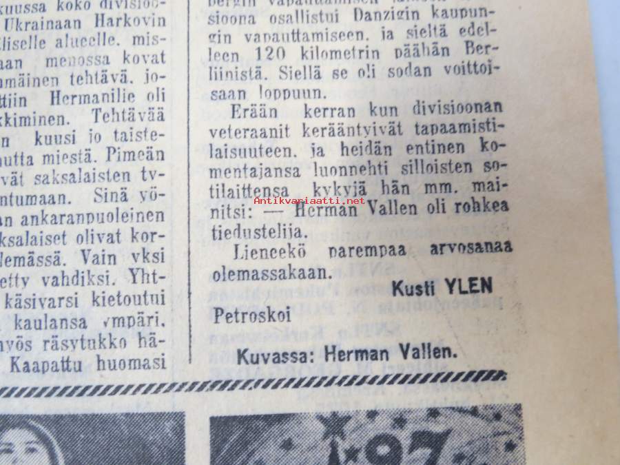 Neuvosto-Karjala, 7.5.1975 (ilmestynyt Petroskoissa); Eläköön voiton 30-vuotispäivä, Kusti Ylen - Rohkea tiedustelija Herman Vallen sodassa, Sankaritytön kotimuseo
