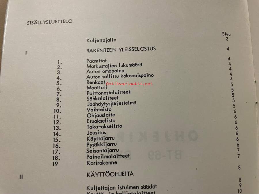 Sisu BT-69 BVT -kuljettajan käyttöohjekirja