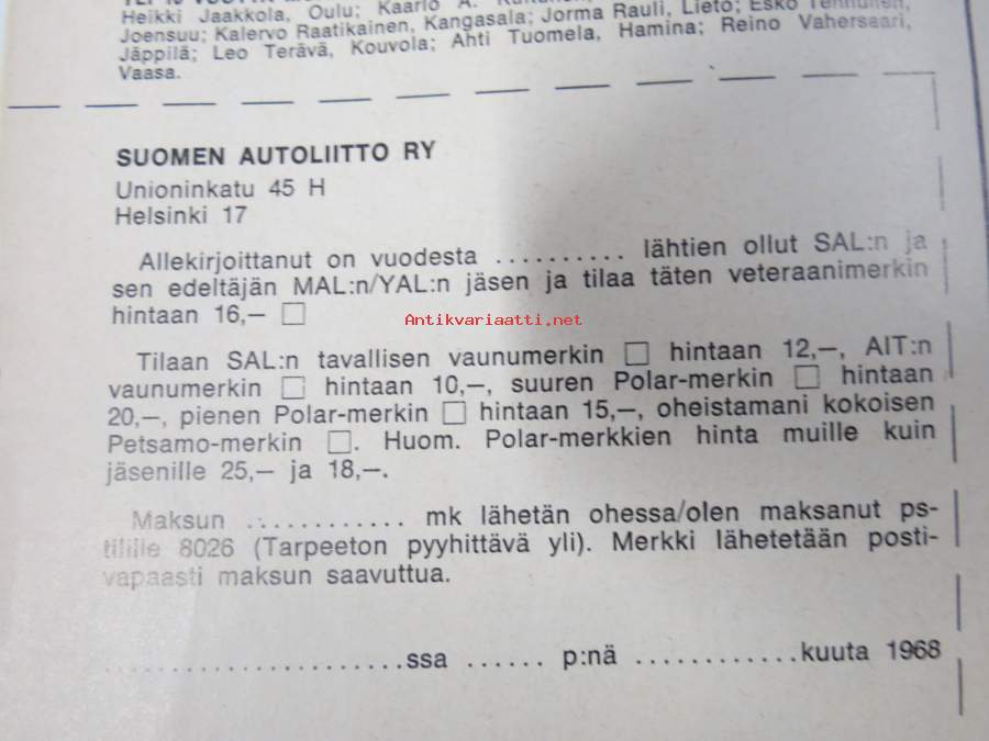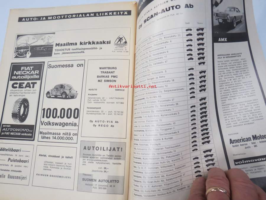 Auto ja Liikenne 1968 nr 10, sis. mm. seur. artikkelit / kuvat / mainokset; Kansikuva AMX, Champion Turbotulppa, Thai International, Autoilijan veroprässi, Austin Näytä