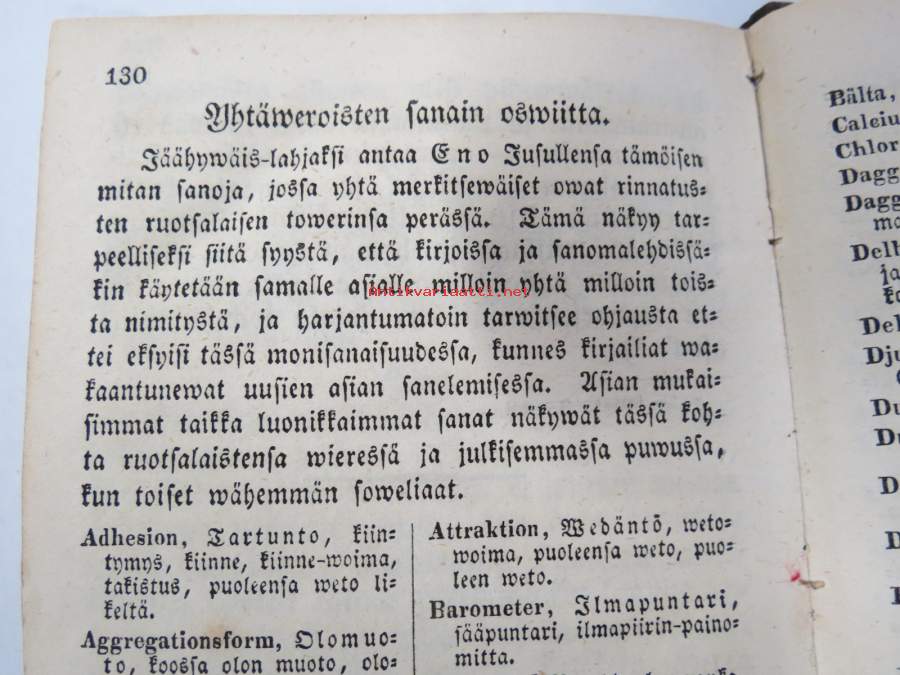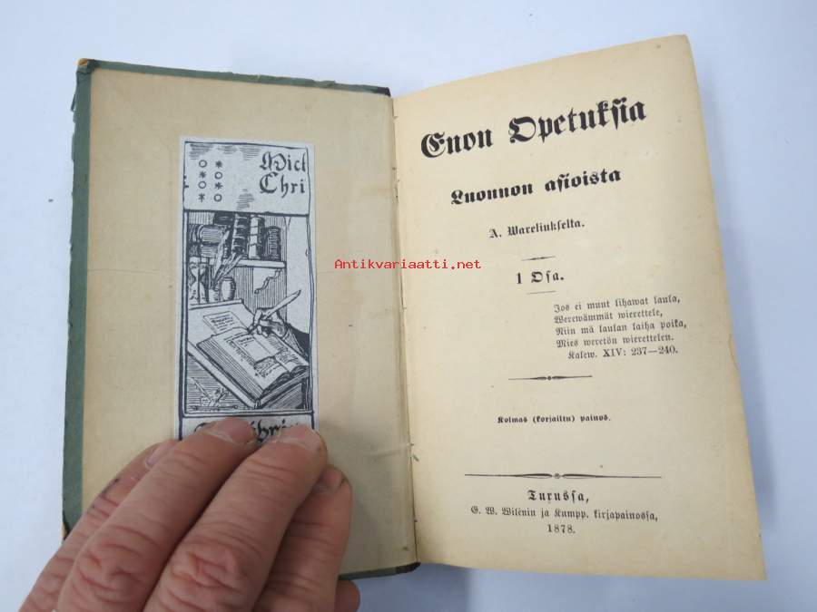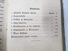 Enon Opetuksia Luonnon Asioista A. Wareliukselta - Ensimmäinen ja Toinen Osa -yhteissidos, I-osa painettu 1878 ja merkitty 3. painos, II-osa painettu 1856 (1. p)