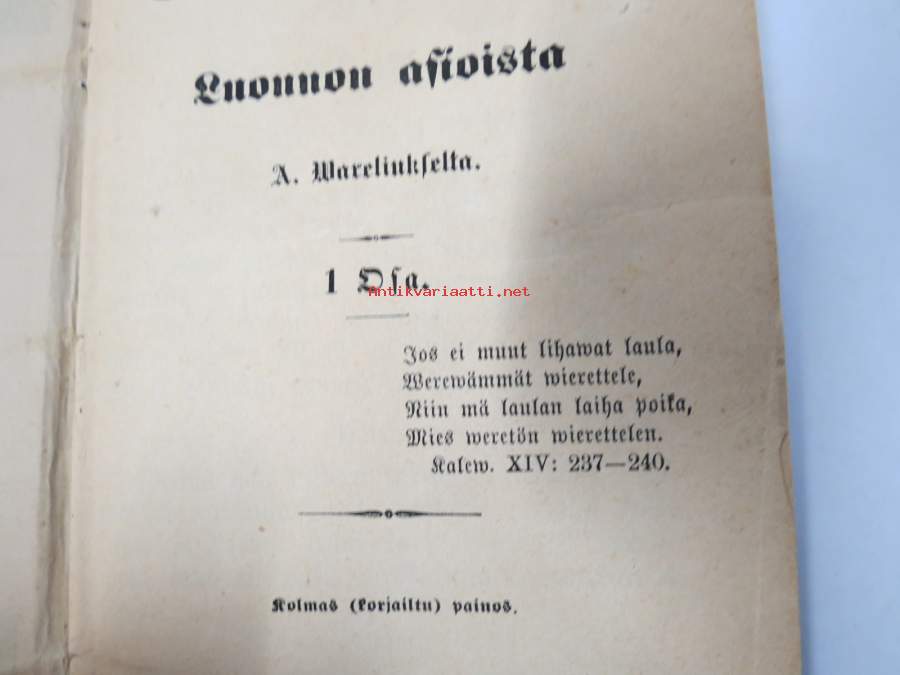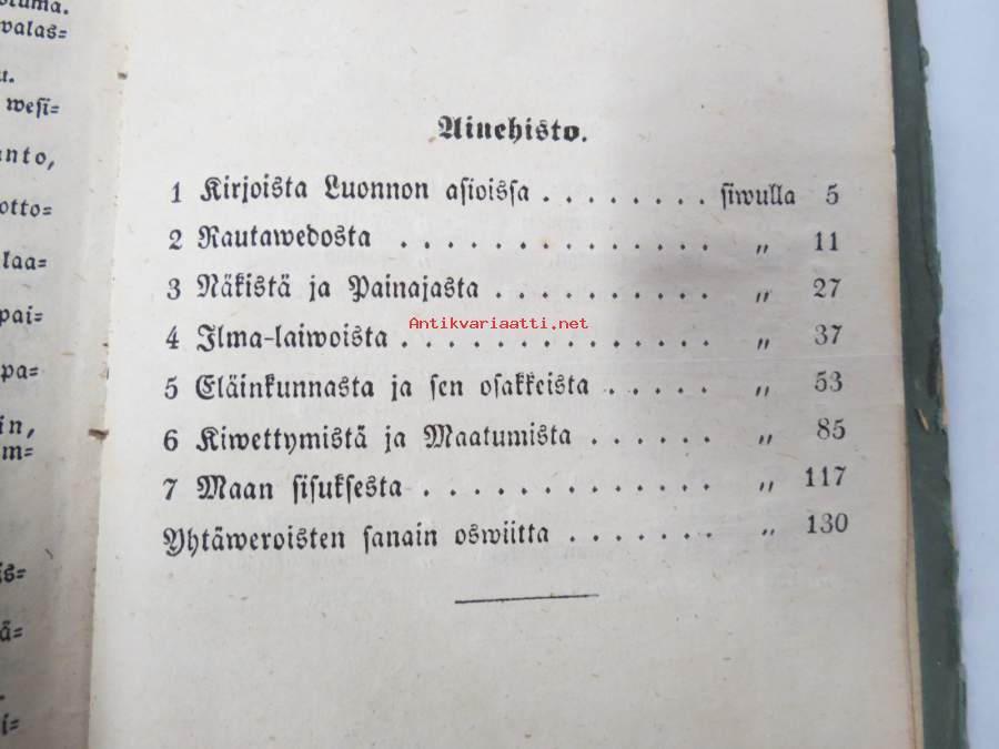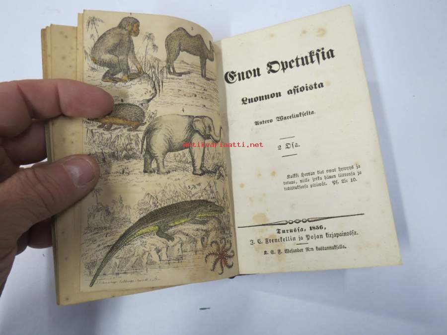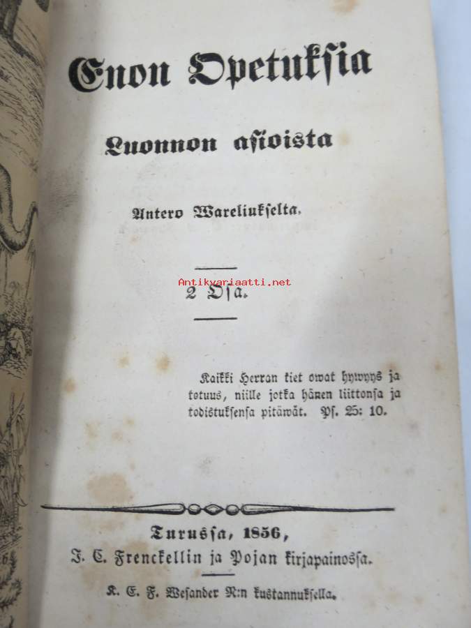 Antero Warelius - Enon Opetuksia Luonnon Asioista A. Wareliukselta - Ensimmäinen ja Toinen Osa -yhteissidos, I-osa painettu 1878 ja merkitty 3. painos, II-osa painettu 1856 (1. p) Näytä