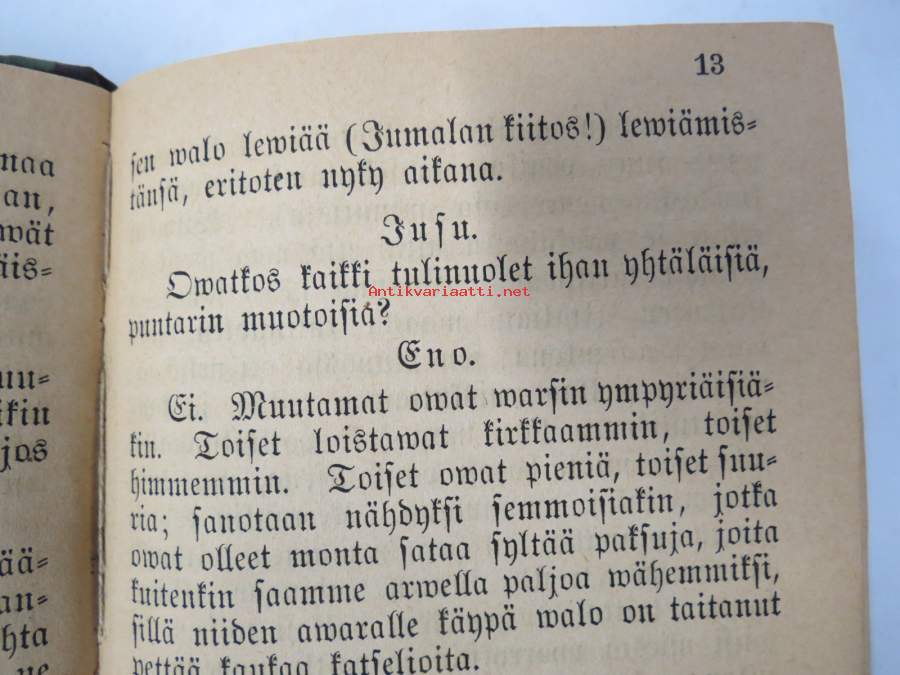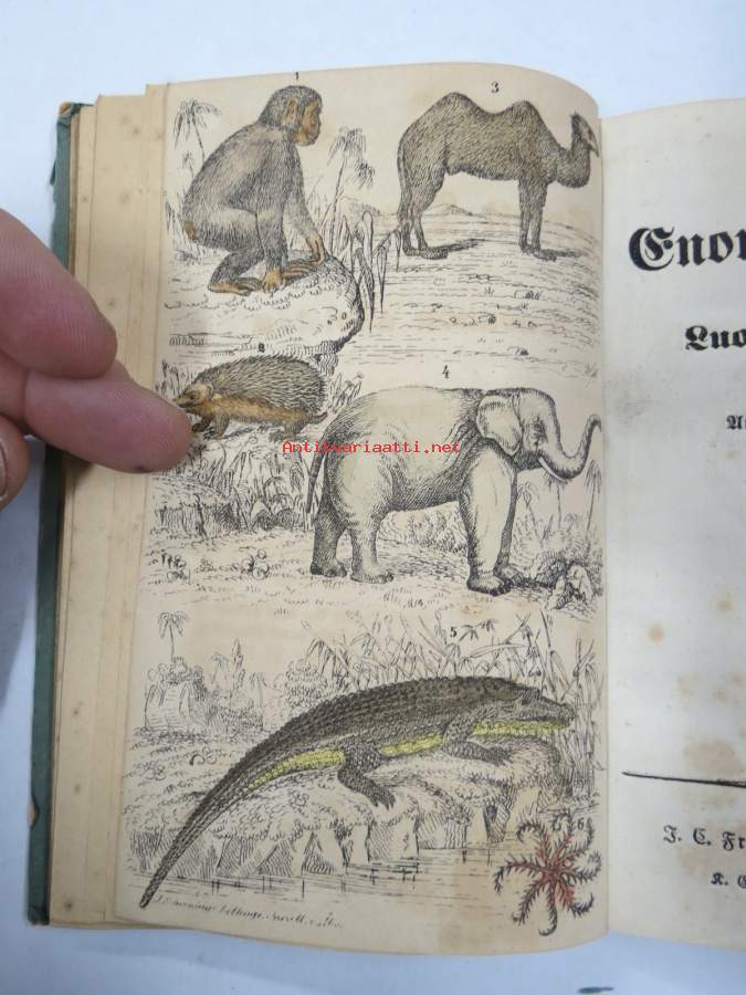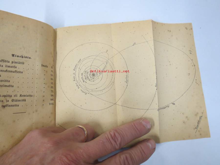 10 x 16 cm aikalaissidos, ikäisekseen hyväkuntoinen, I-osan liitekuvat tallella. Toiseessa niistä aurinkokunta ja toisessa käsinväritettyjä eläimiä.