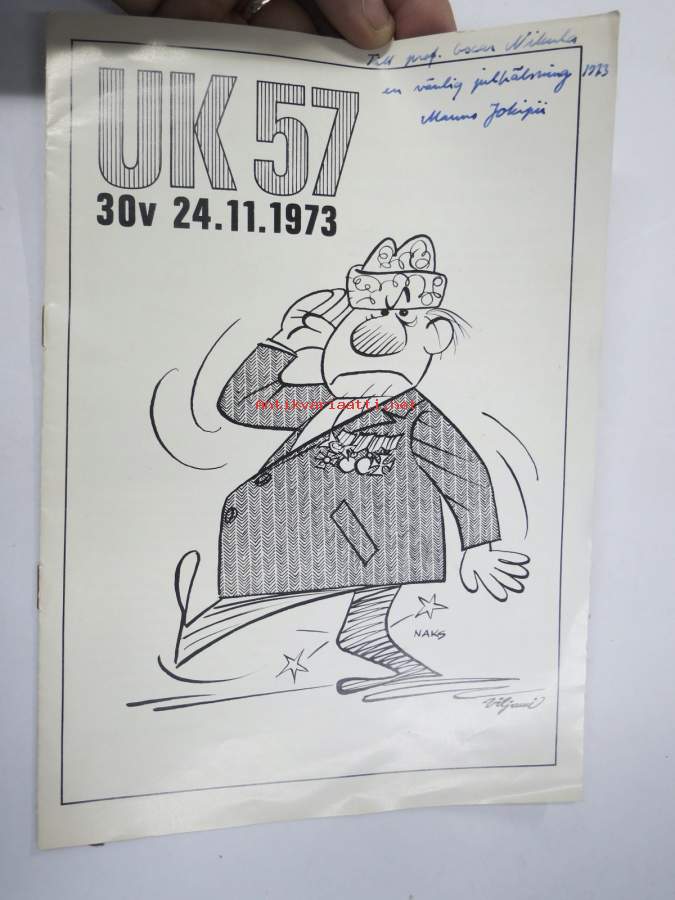 UK 57 (RUK-kurssi) 30 v. 24.11.1973 -30-vuotiskurssijuhlan julkaisu, kannessa Mauno Jokipiin omiste prof Oscar Nikulalle, Jokipiin artikkeli SS-vapaaehtoisista
