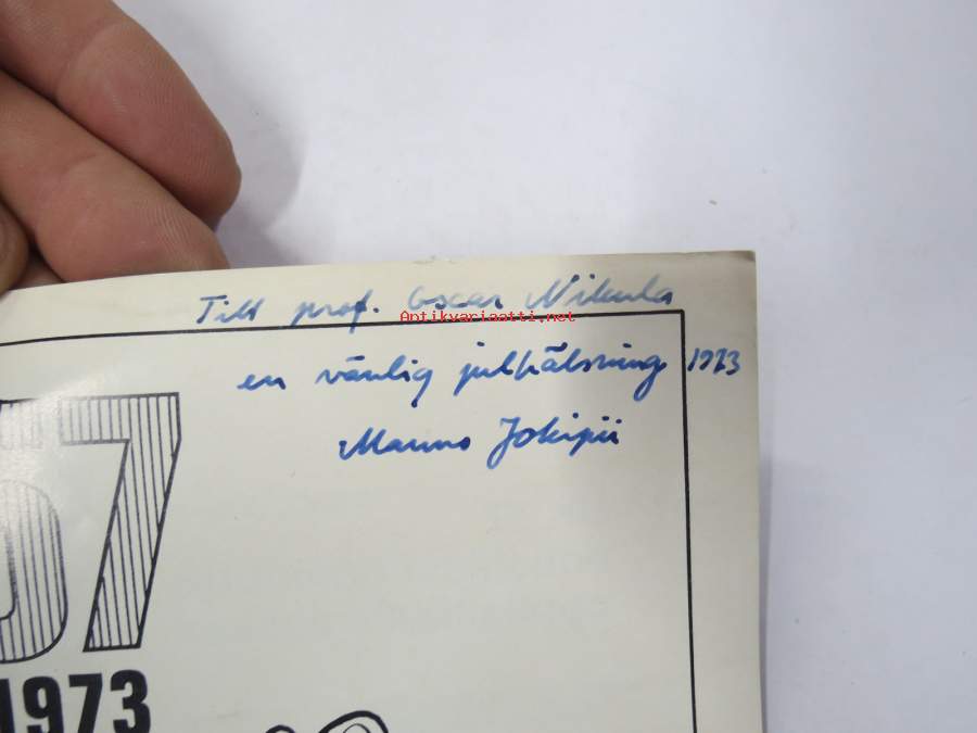 Otto Andersson - Om Jean Sibelius - Två artiklar, Särtryck ur Hbl 8.12.1956 / 3..1957 -tekijän omiste & nimikirjoitus "Till Prof. Dr. Rudner..."