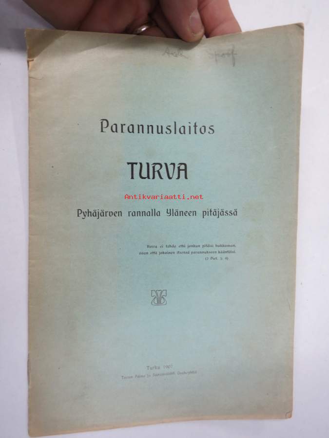 Parannuslaitos Turva (alkohoolitautia eli alkoholismia sairastaville) Pyhäjärven rannalla Yläneen pitäjässä