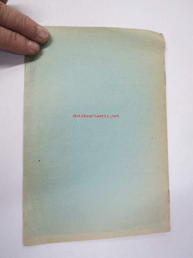 Saatavilla 1 kpl Julkaisuvuosi 1907 Sivuja 11 Kunto K2 Sidonta/painoasu Nidottu (pehmeäk.) Kielet Suomi