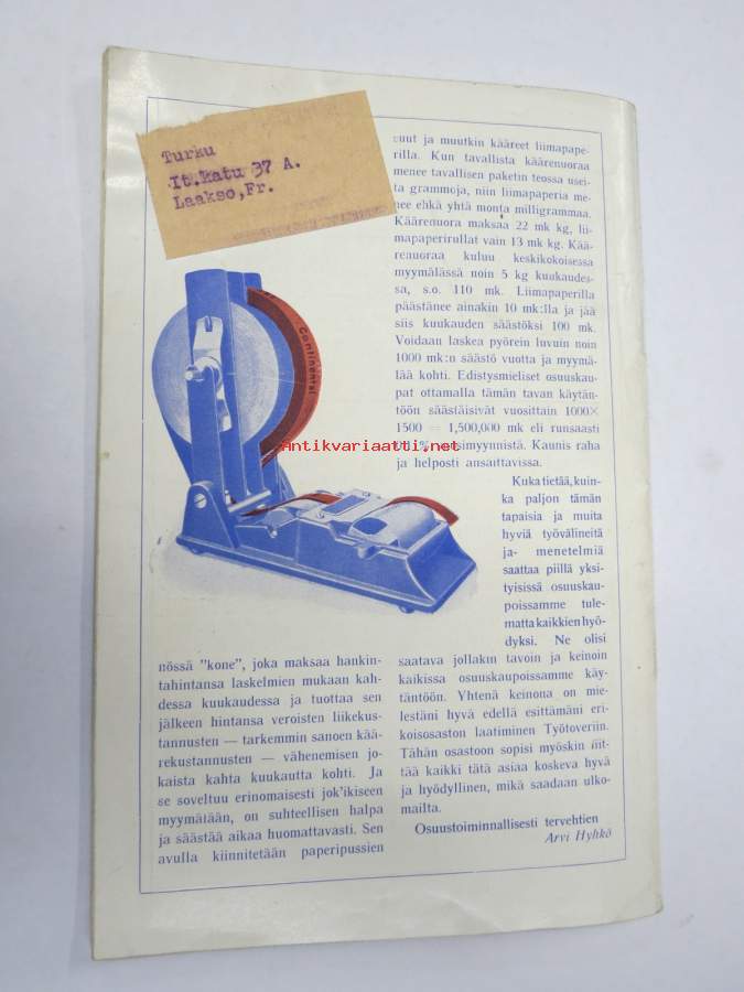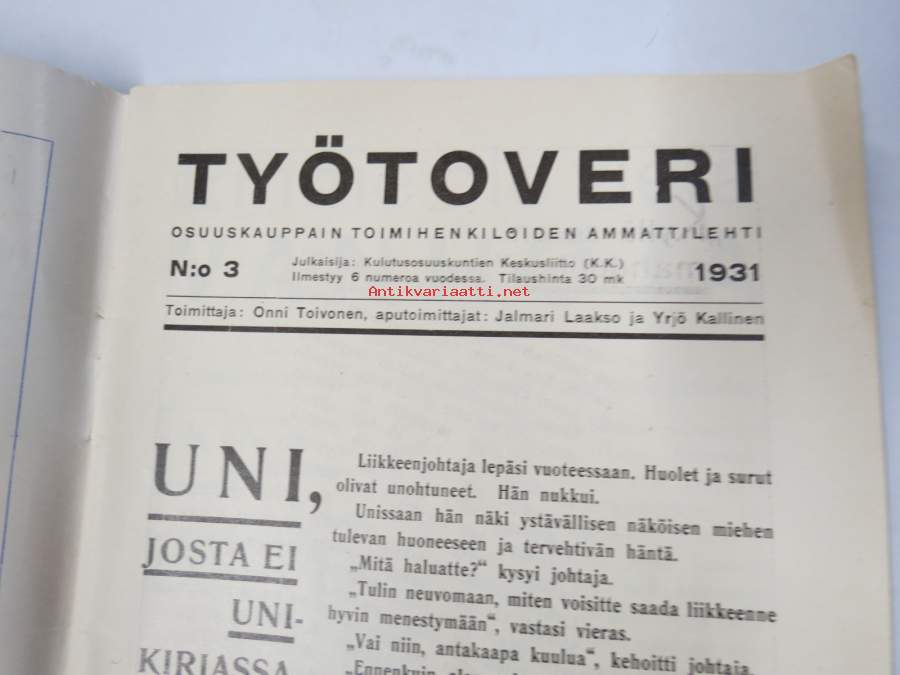 Työtoveri 1931 nro 3 - Osuuskauppain toimihenkilöiden ammattilehti, mm. mainontaan liittyviä artikkeleita ja materiaalia