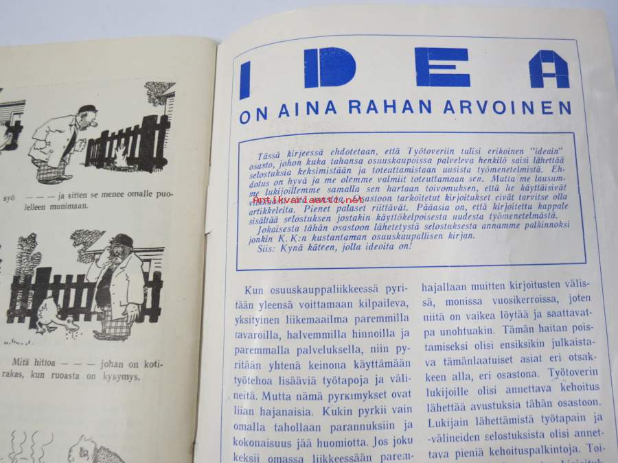 Työtoveri 1931 nro 1 - Osuuskauppain toimihenkilöiden ammattilehti, mm. mainontaan liittyviä artikkeleita ja materiaalia