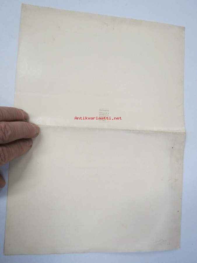 Svante Dahlström -nimikirjoitus kiitoskortilla