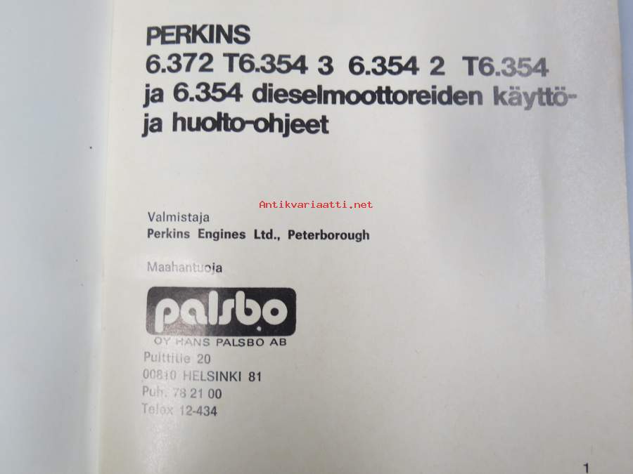 Perkins 6.372, T6.3543, 6.3542, T6.354, 6.354 Käyttöohjekirja / huolto-ohjekirja + varaosaluettelo