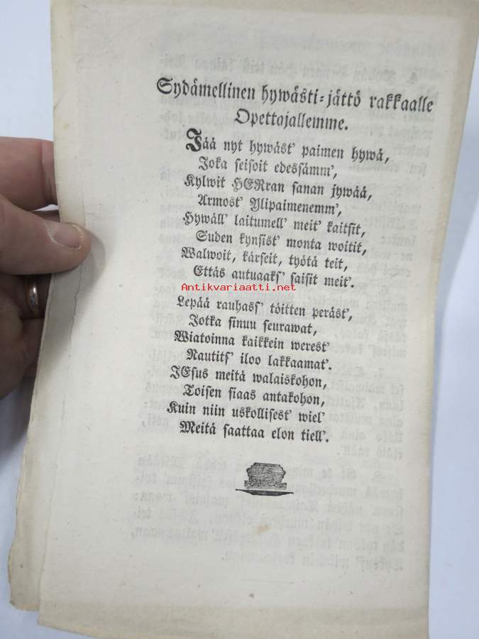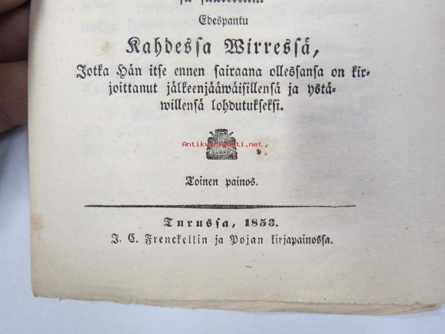 Wähäinen ja Wiisas . Lastensaarna johdosta Sananlaskukirjan 30: 24-28. teos J.C. Ahle`n. kääntämä M. Costiander´in. Porwoossa 1856 Näytä