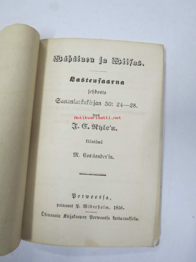 Wähäinen ja Wiisas . Lastensaarna johdosta Sananlaskukirjan 30: 24-28. teos J.C. Ahle`n. kääntämä M. Costiander´in. Porwoossa 1856