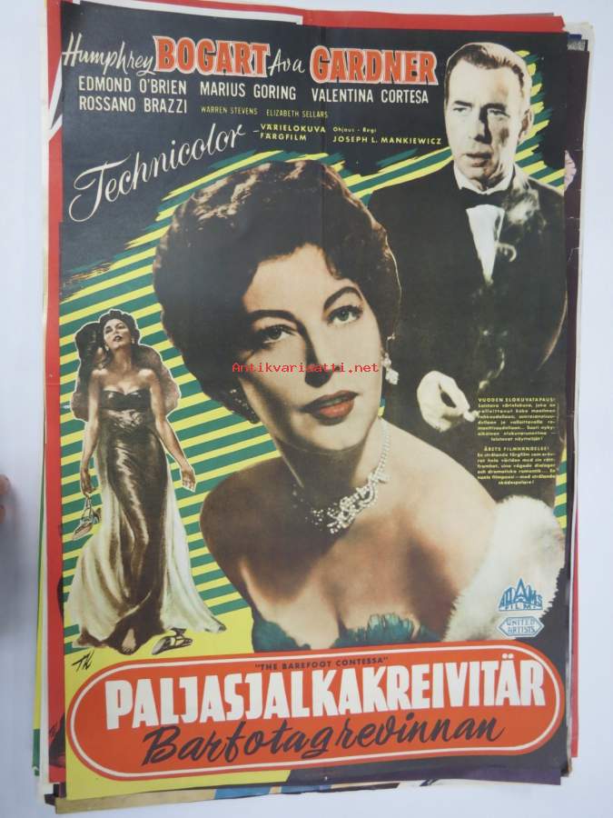 Paljasjalkakreivitär, ohjaus Joseph Mankiewicz, pääosissa Humphrey Bogart, Ava Gardner -elokuvajuliste