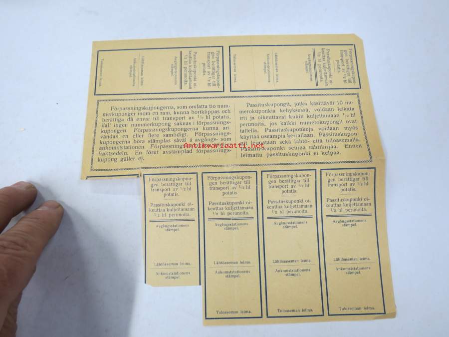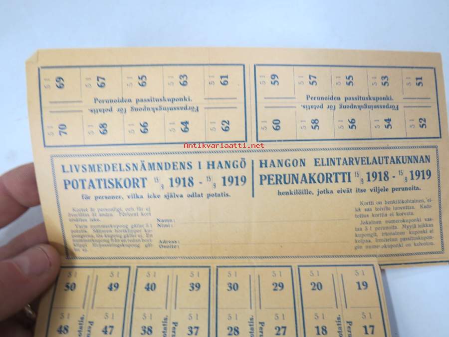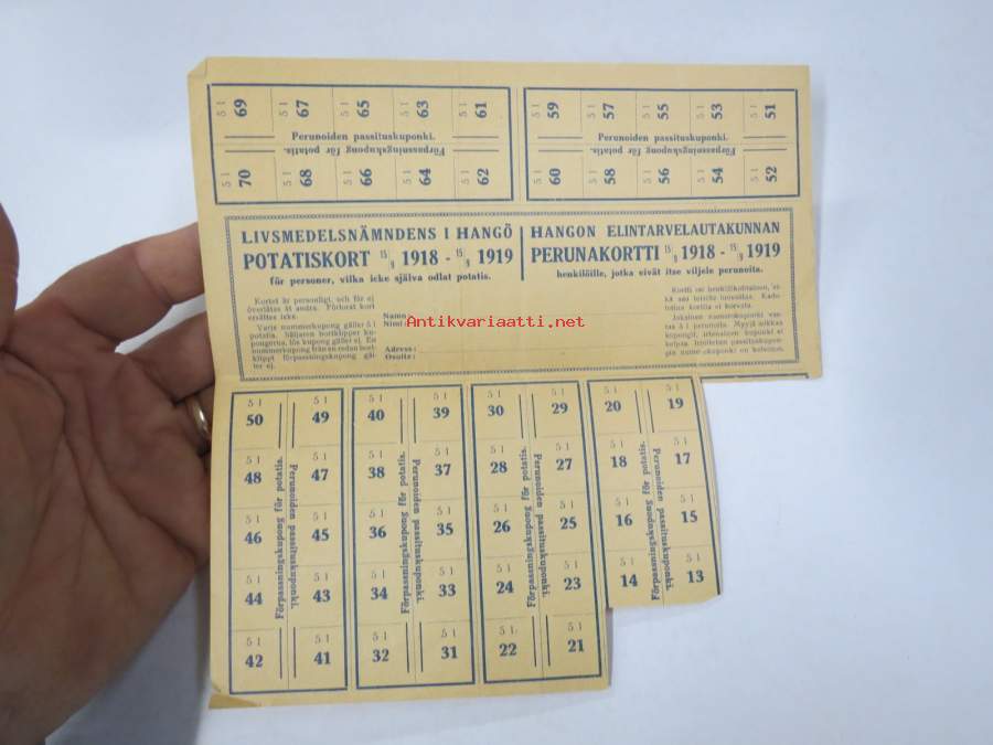 Hangon Elintarvikelautakunnan perunakortti 1918-1919 henkilöille jotka eivät itse viljele perunoita - Livsmedelsnämndens i Hangö Potatiskort