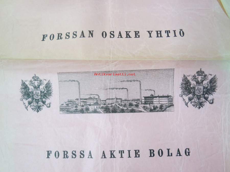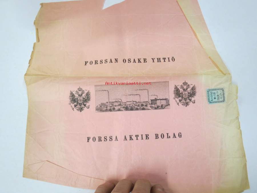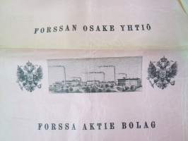 Forssa Aktiebolag 1880-luku -kangaspakan etiketti / pakkauskääre