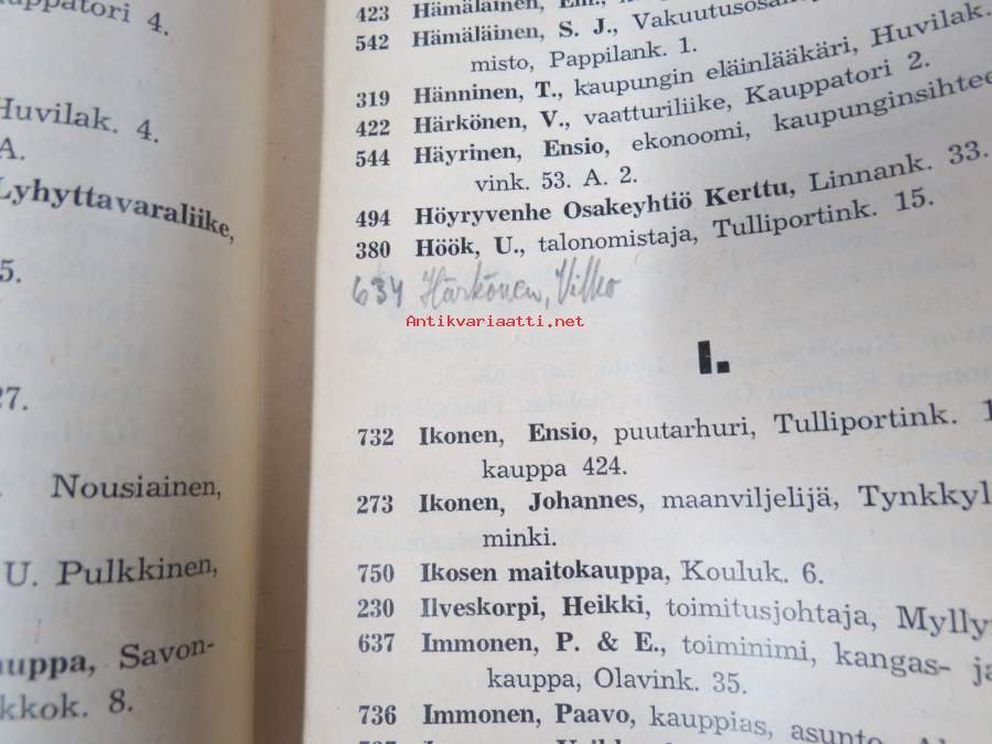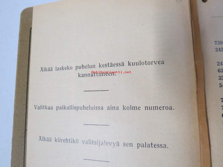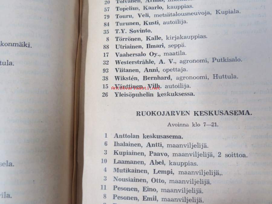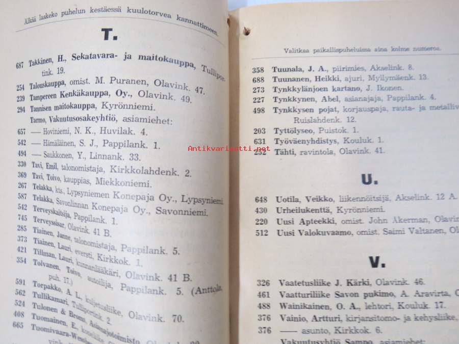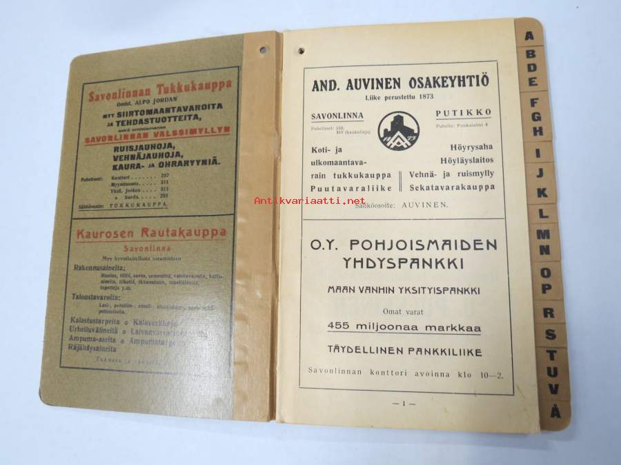 Savonlinnan ja ympäristön puhelinluettelo 1944, sisältää myös erillisen lisäluettelon