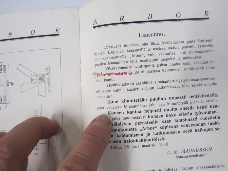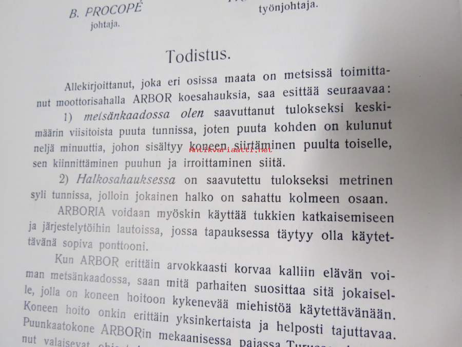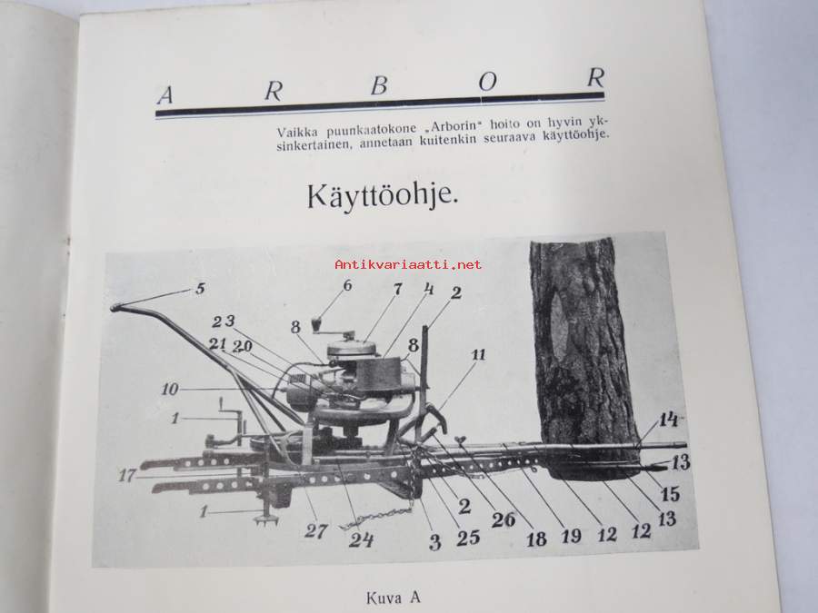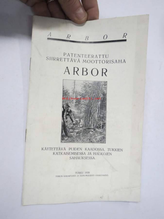 ARBOR - Patenteerattu siirrettävä moottorisaha ARBOR, käytettävä puiden kaadossa, tukkien katkaisemisessa ja halkojen sahauksessa -käyttöohjekirja