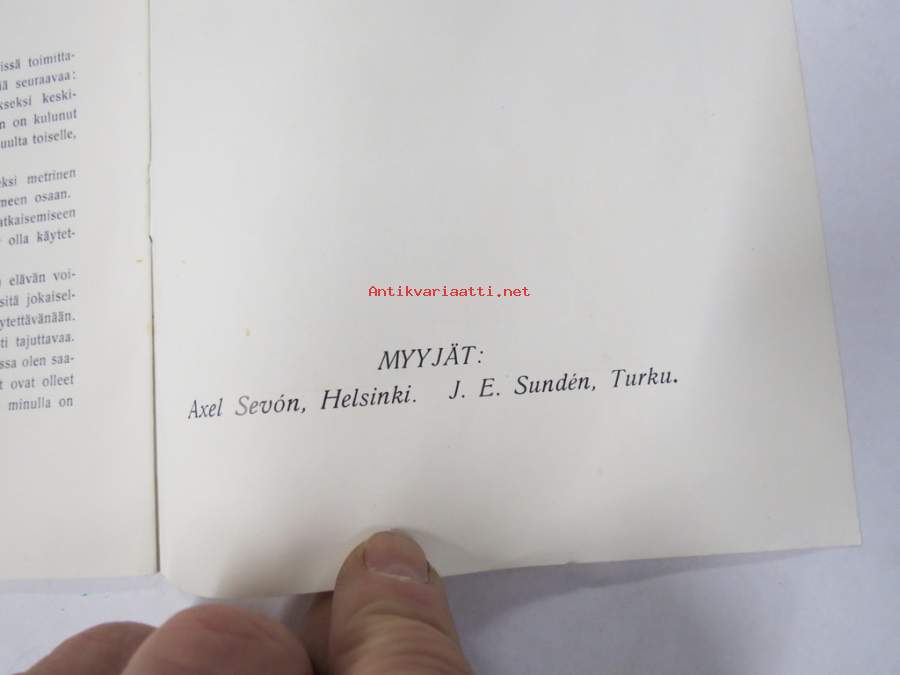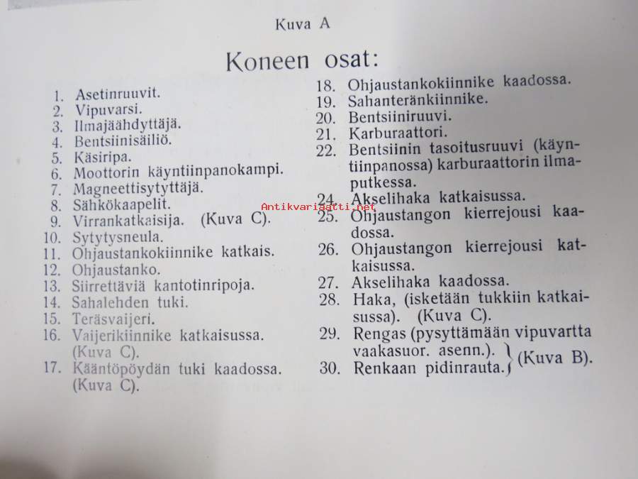 14 x 22 cm, alkuperäinen käyttöohjekirja v. 1920, erittäin harvinainen julkaisu.