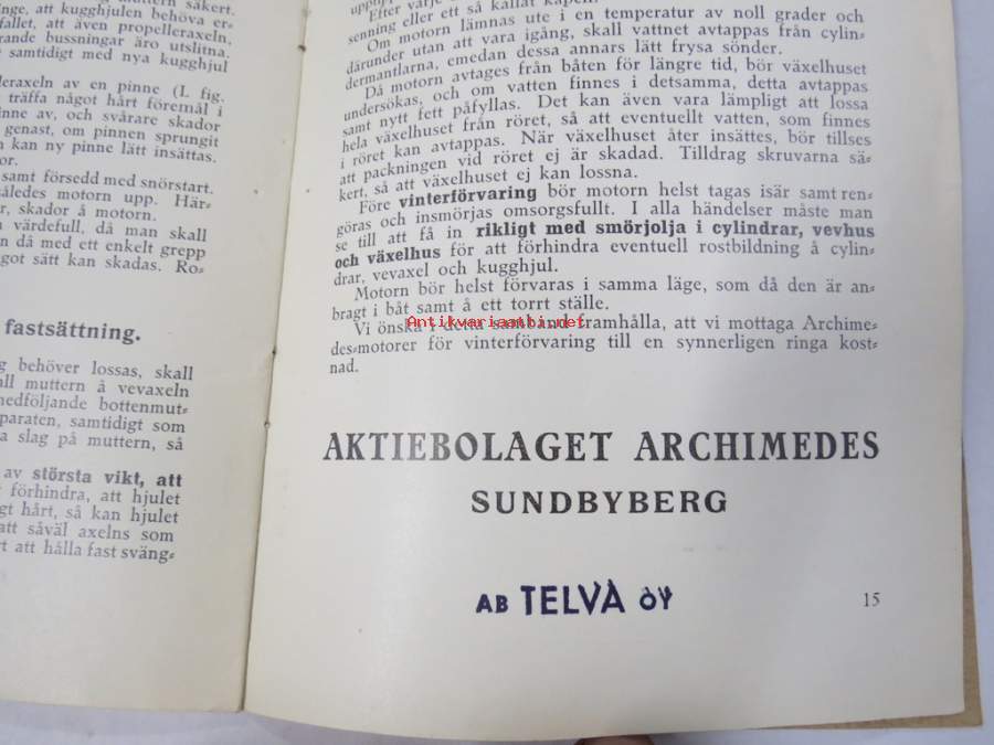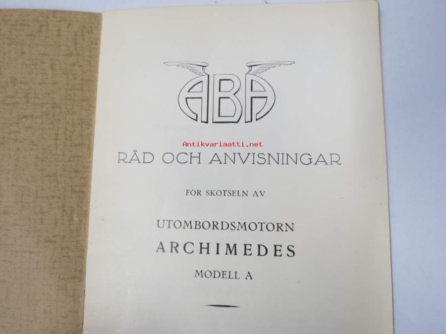 Archimedes - Handbok i skötseln av utombordsmotorn Archimedes Modell A -käyttöohjekirja