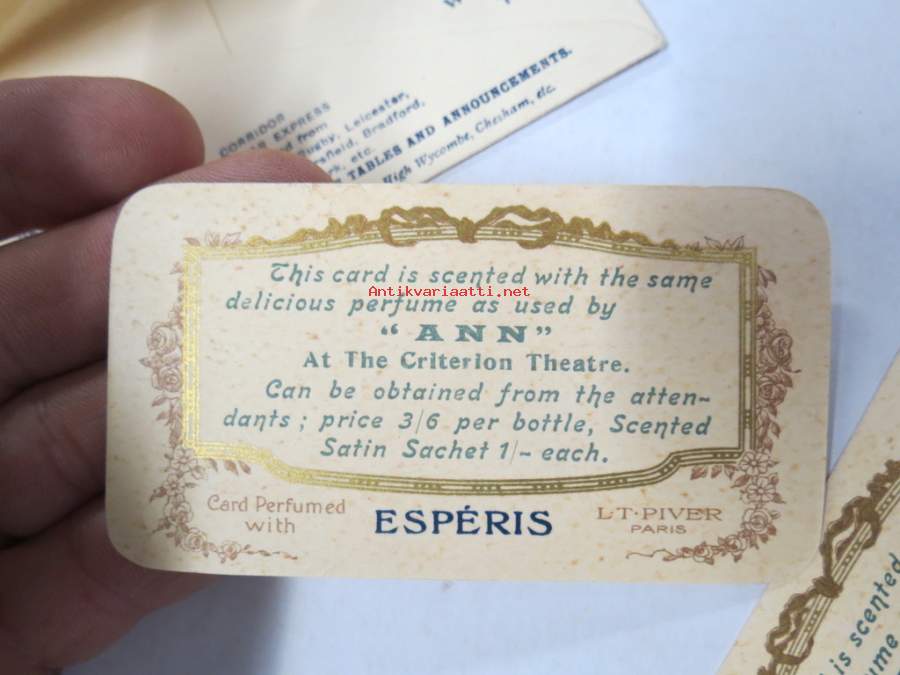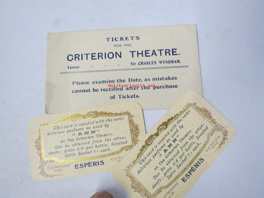 Tickets for the Criterion Theatre - Lessee Sir Charles Wyndham, kuori teatterilipuille, sisältää 2 kpl vuoden 1912/13 kalenteria, jossa sama "Esperis" tuoksu kuin...