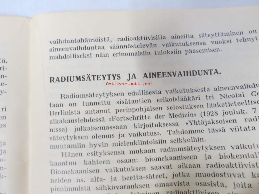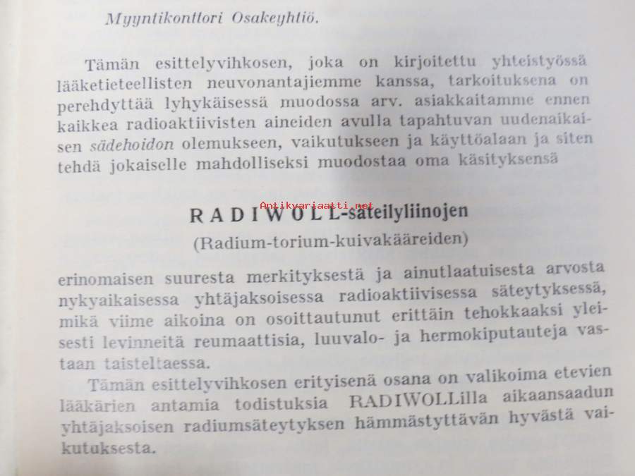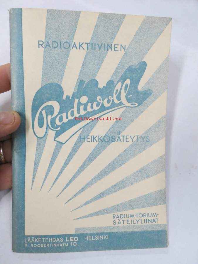 Radiwoll heikkosäteytys / Radium-torium säteilyliinat - Lääketehdas Leo, radioktiivisten tuotteiden luettelo, niiden käyttö, lausuntoja ym.