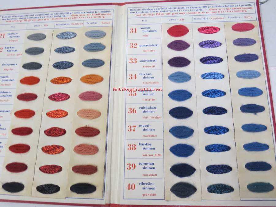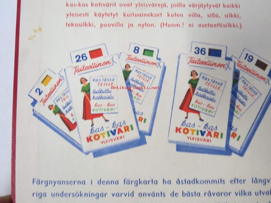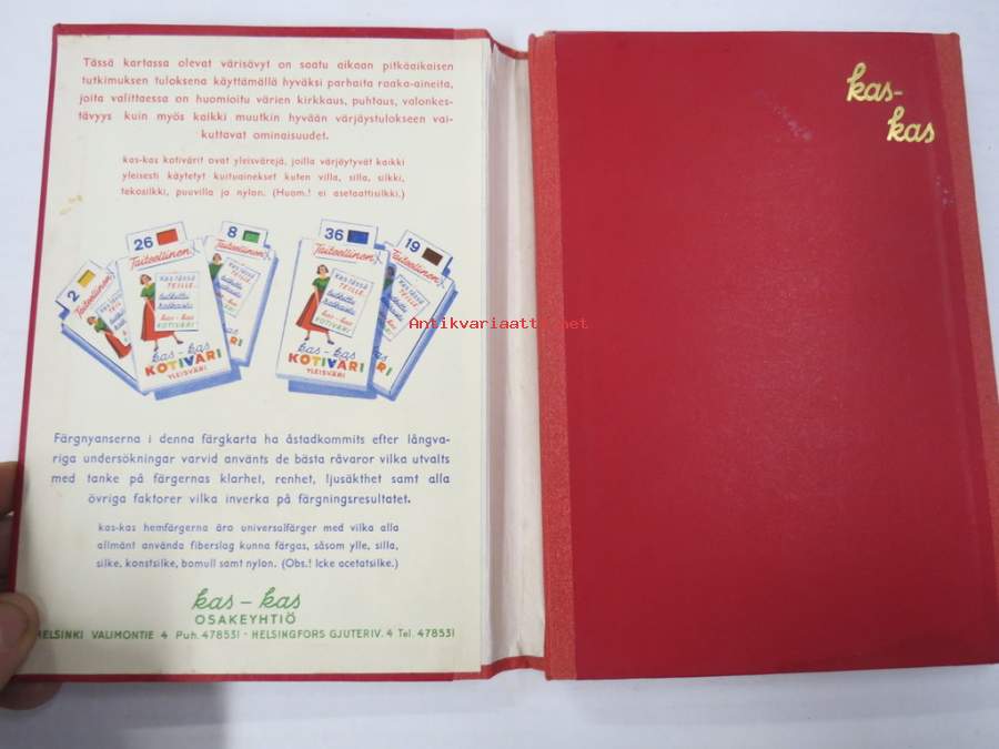 Kas-Kas kotiväri-Hemfärg - Värikartta / Färgkarta, värit sommitellut tekstiilitaiteilija Elsa Kallio