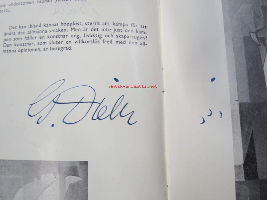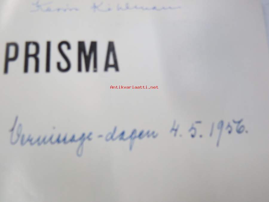 Prisma 1956 - Taidehalli, "Vernissage-dagen 4.5.1956" -näyttelyluettelo, kaikkien taiteilijoiden nimikirjoitukset; Yngve Bäck, Gösta Diehl, Ragnar Ekelund, Torger...