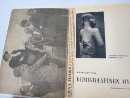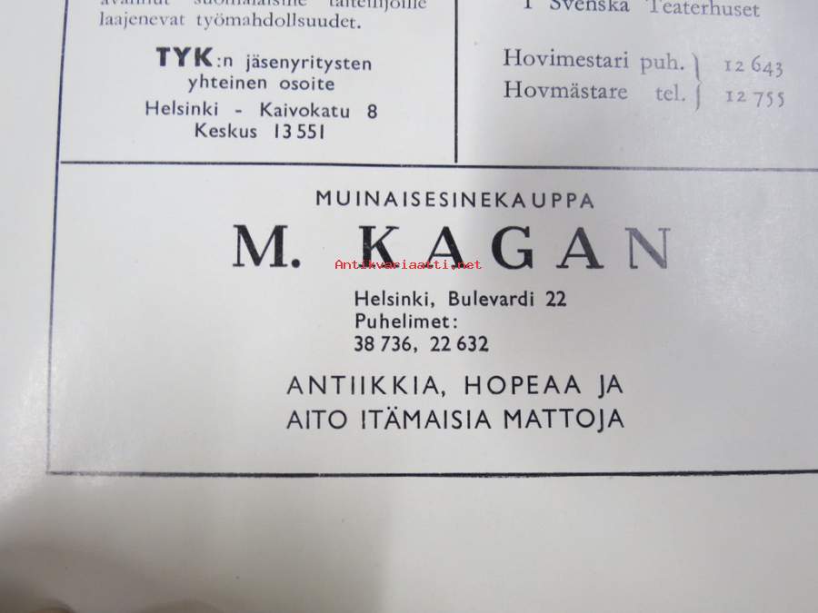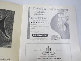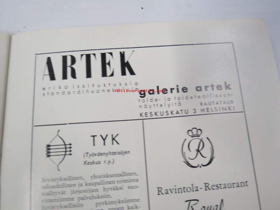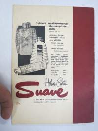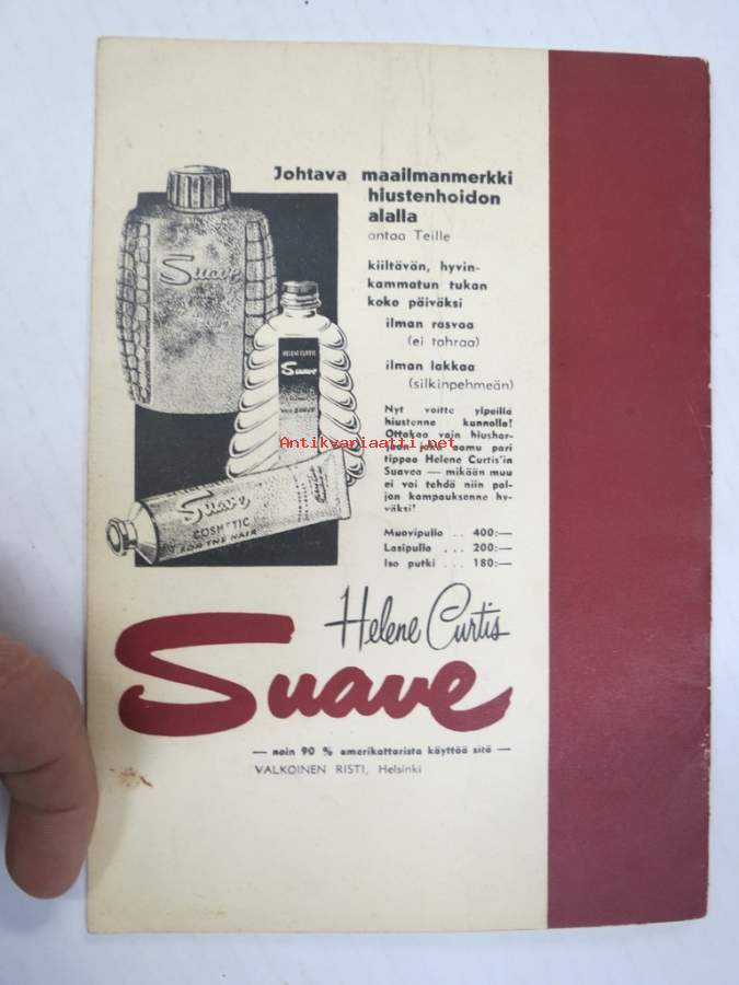 | Saatavilla | 1 kpl | | Julkaisuvuosi | 1956 | | Sivuja | 28 | | Kunto | K2 | | Sidonta/painoasu | Nidottu (pehmeäk.) | | Kielet | Suomi, Ruotsi |